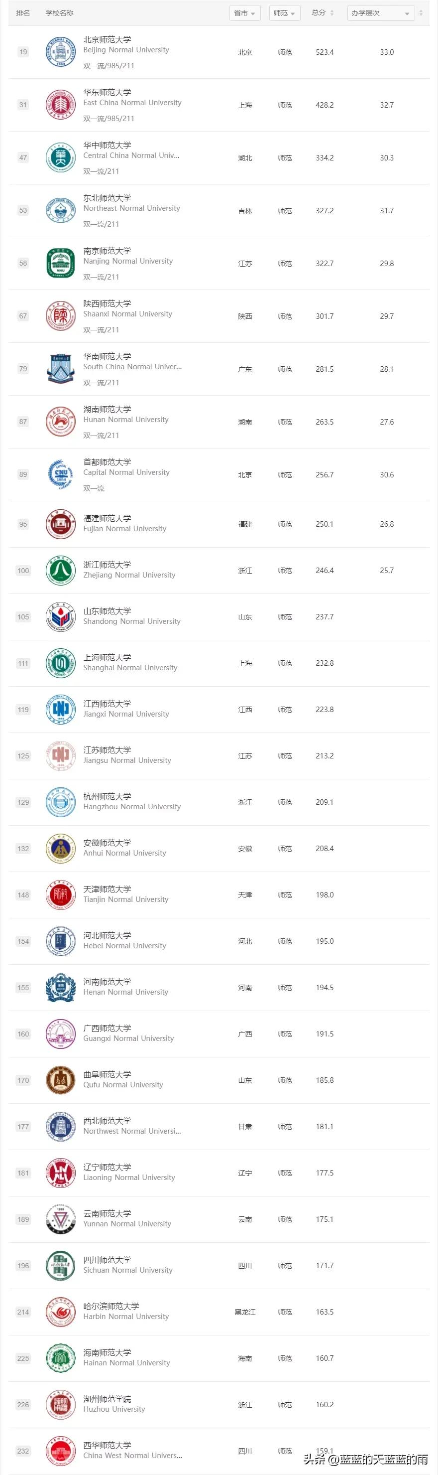 師范類大學排名全國 師范前十大學排名