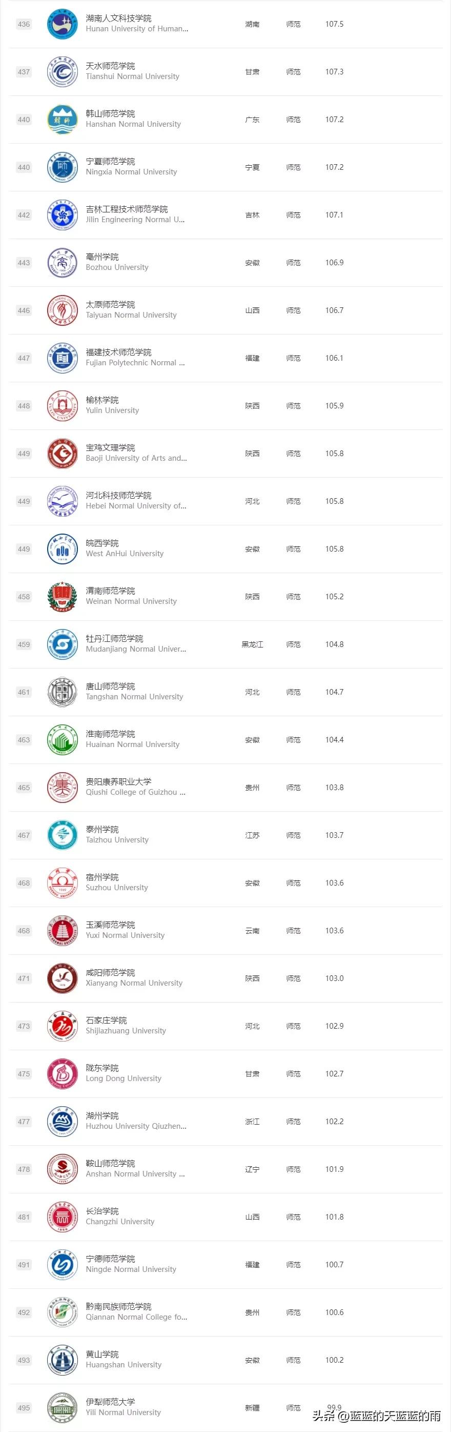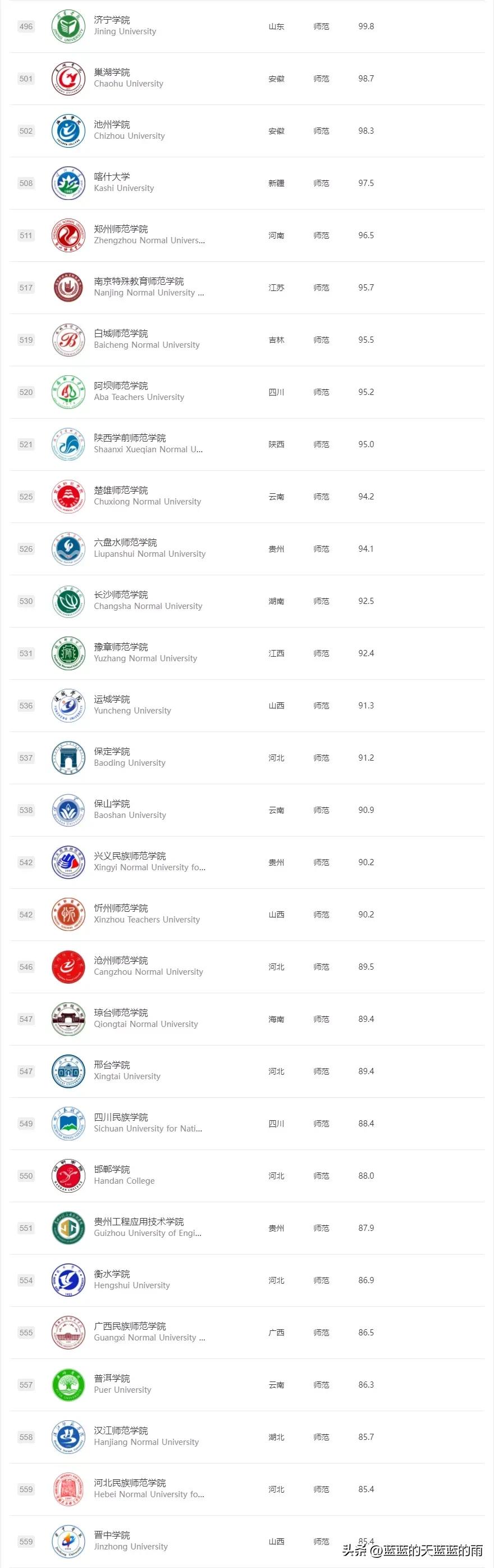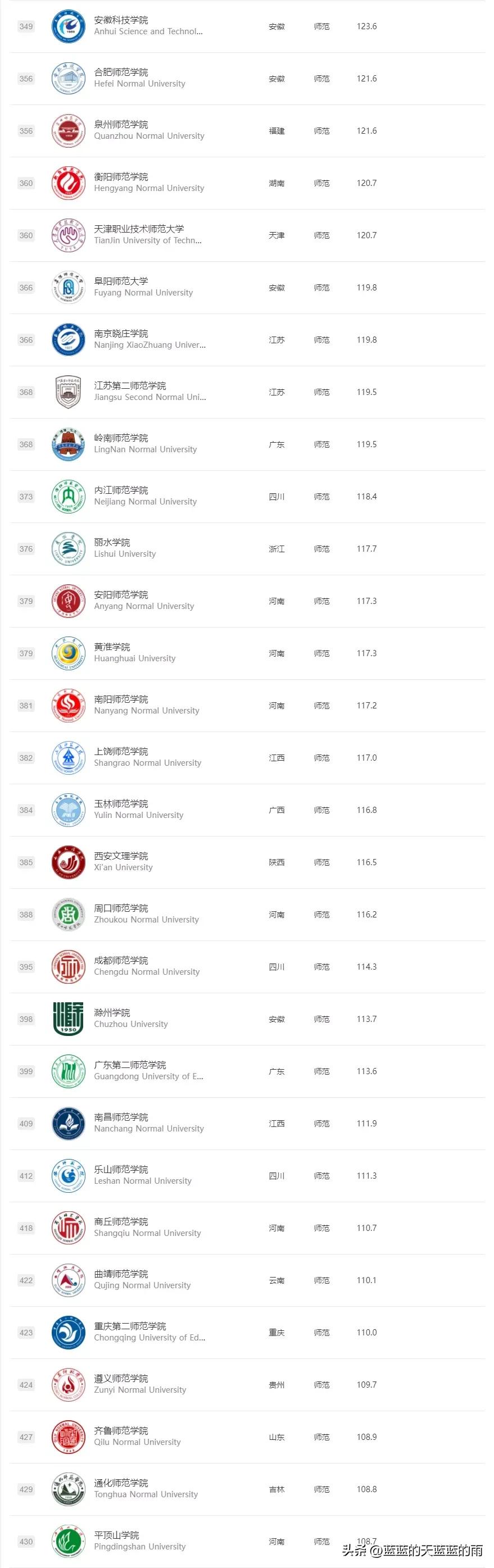 校友會版師范類大學排名榜如下: