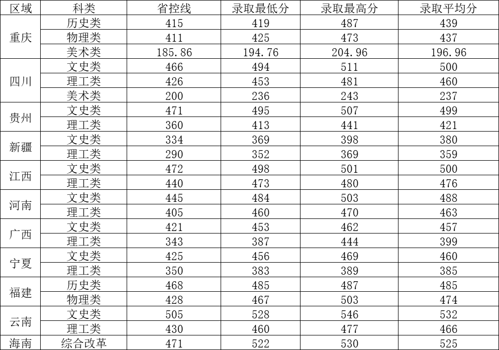 物理類:計算機類(大數據與智能科學)432分、計算機類(軟件)428分、自動化類428分、土木工程426分、工程造價427分、電子信息類425分、工商管理類444分、電子商務448分、計算機類(計算機與物聯網)426分、網絡與新媒體458分。