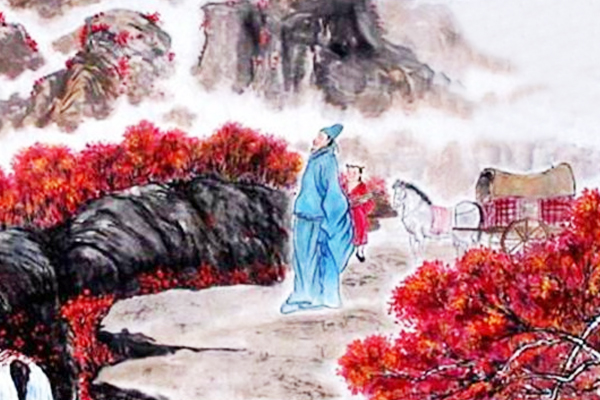 當時他拿到的題目,正是杜牧的《山行》中的“停車坐愛楓林晚,霜葉紅于二月花”。于是他提筆畫了一幅畫,畫中有個人坐在石頭上面,前面有一些楓葉。