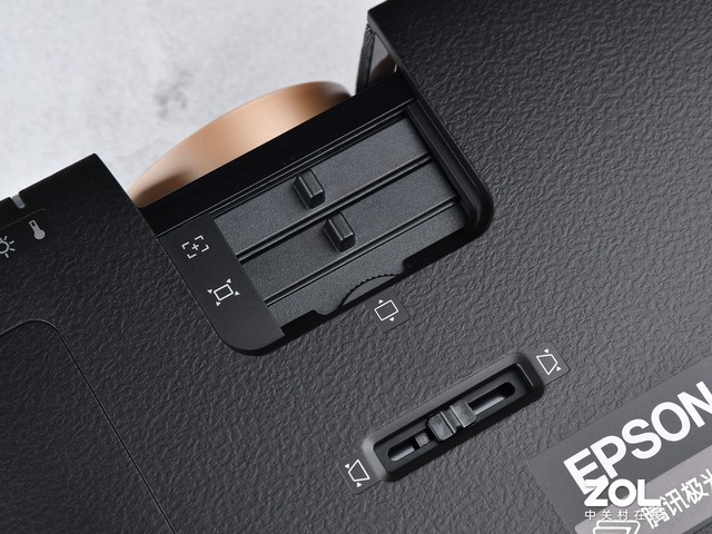 外觀方面,愛普生CH-TW6280T家用投影和上面的產品氣質類似,都是黑色打底,配合金色的鏡頭涂裝,產品延續了愛普生的設計語言。其體積比CH-A100大一些,畢竟是更專業的4K級專業家用投影。