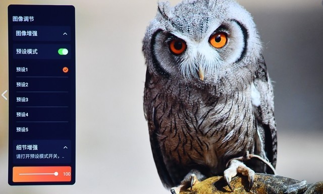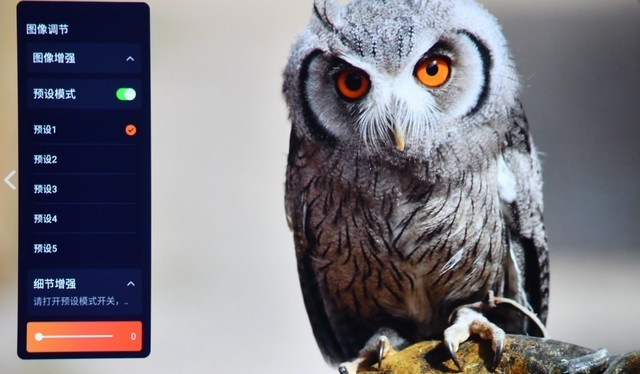 愛普生CH-TW6280T家用投影擁有原圖級別的畫面展現能力,這是入門級投影機不具備的,其色彩亮度、色溫效果以及色準效果都很出色。可以看到,無論是景物還是人物,都給人真實的感覺。同時愛普生CH-TW6280T家用投影擁有10bit芯片,色彩數量達到10.7億色以上。其還具有細節增強的功能,通過下圖的對比可以發現,其的確可以增強細節表現,對比貓頭鷹的毛發就可以發現這一點。
