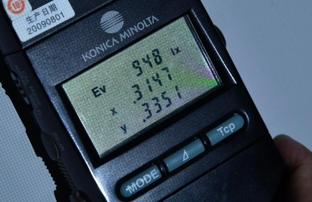 愛普生投影機重要的優勢就是色彩亮度,因此我們自然也是要將兩款投影機的色彩亮度測試作為指標之一。我們將照度計位于畫面的中央,然后輪流測試白色以及三原色的畫面,白色的數值如果等于后三者之和,說明色彩亮度沒有水分,如果有差值則證明色彩亮度表現不足。