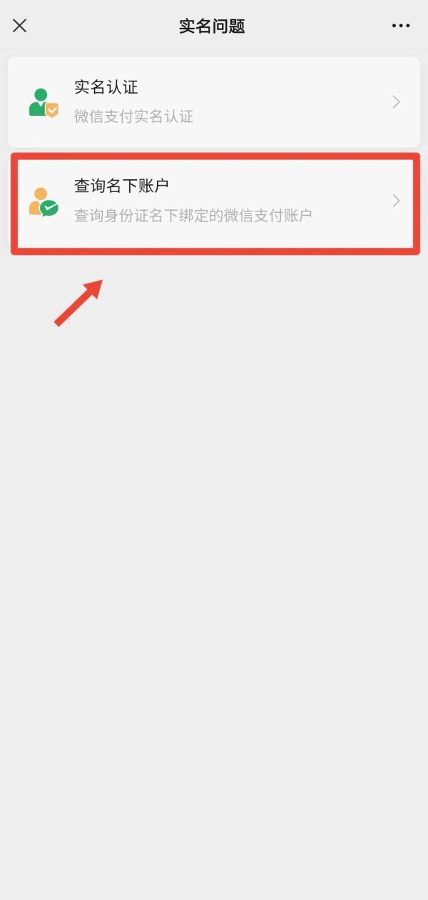 打開微信,依次點擊“支付”—“錢包”—“幫助中心”,進入支付中心后,再點擊“實名問題”—“查詢名下賬戶”。