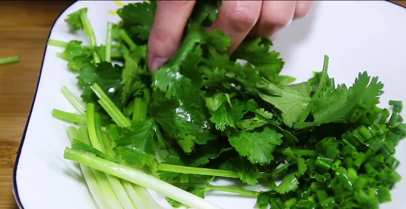3.準備配料,先將一小把黨參切成三厘米長的小段,再取一小把紅棗洗凈,然后準備一小把細蔥,將其洗凈后,先將蔥葉切成蔥花,蔥白不切,放在一邊備用。再來幾根香菜和半塊生姜,香菜切成小段,生姜切片。