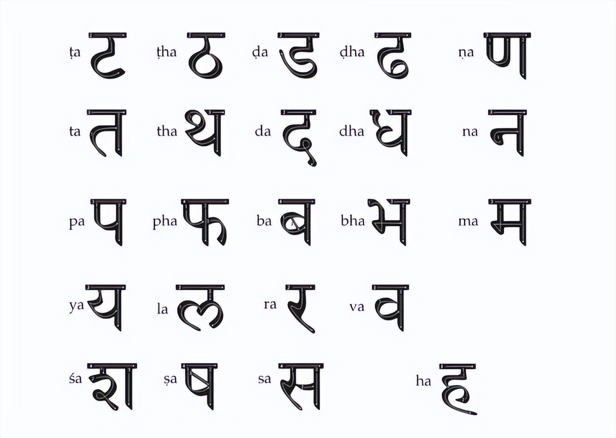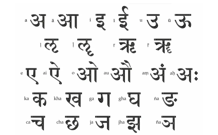 印地語有十一個元音,現代印地語中還有一個英語音亦列入元音一類。印地語有四十三個輔音,其中包括兩個半元音。