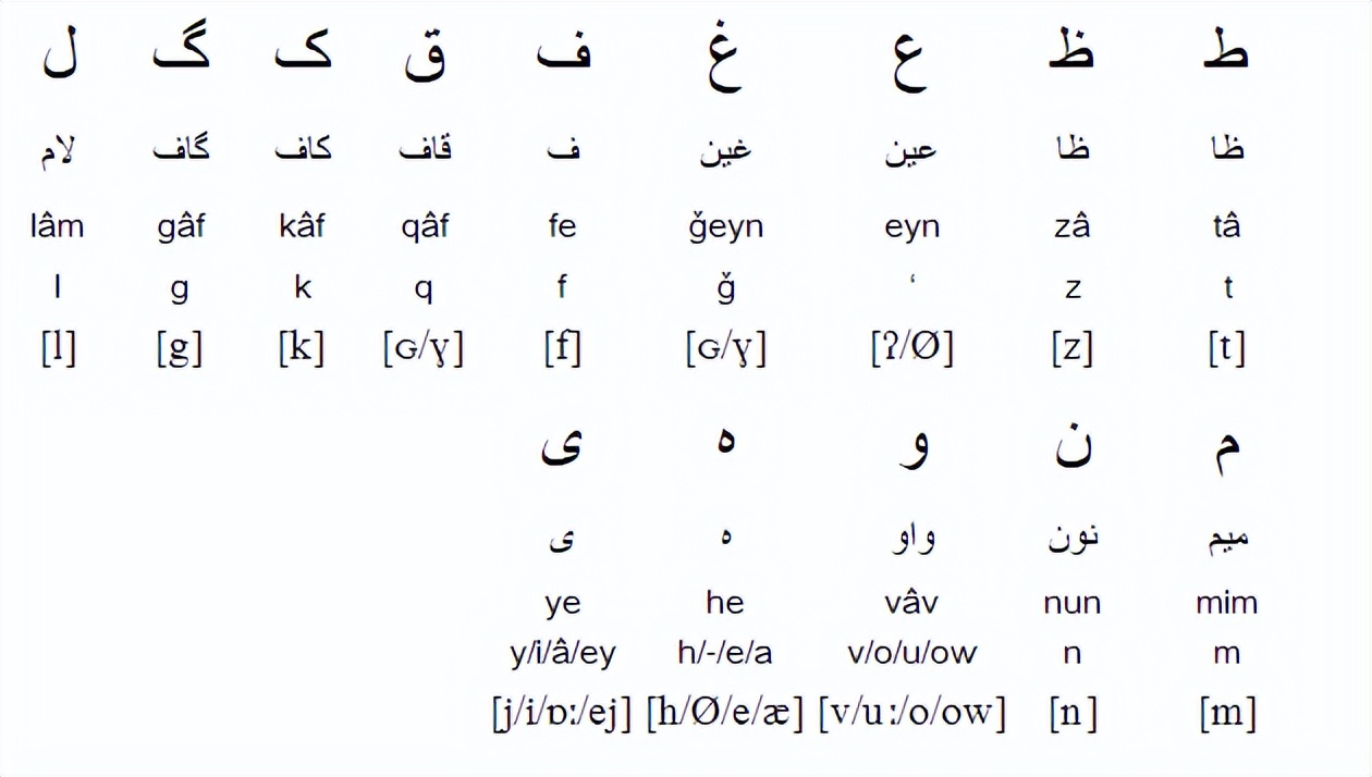 輔音:b, c, d, f, g, h, j, k, l, m, n, p, q, r, s, t, v, w, x, z