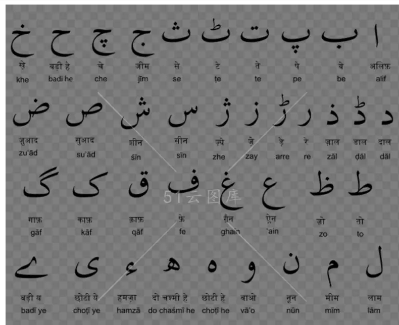 孟加拉語字母表:孟加拉語中有十一個元音包含七種長短不同的發音。除第一個元音外,其它在同輔音一起使用時需要變形。另外,孟加拉語中有三十九個輔音包含了不超過二十九種發音。