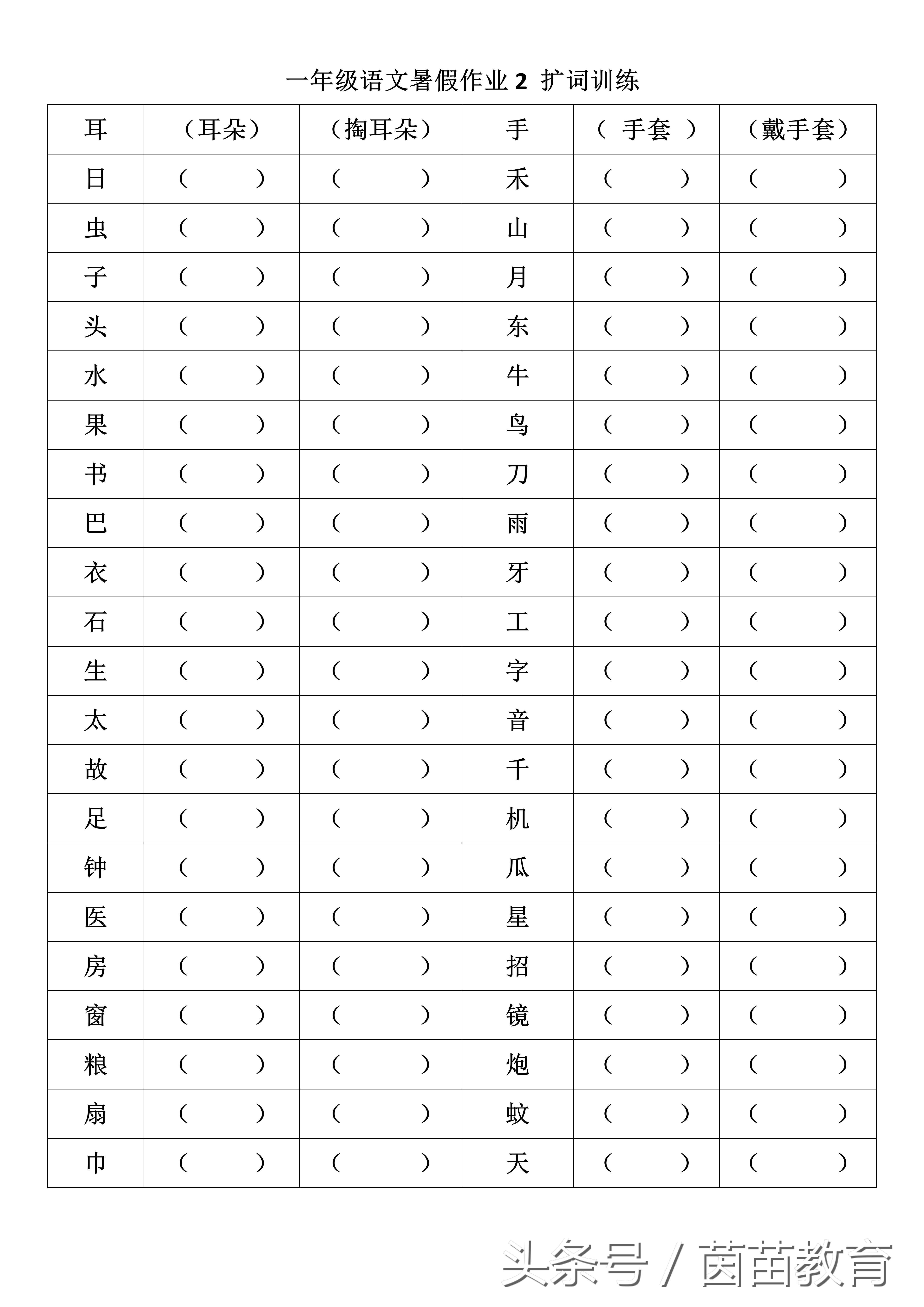 導讀前幾天給大家一份擴詞的訓練,不少家長給我留言說,需要參考答案。其實,大家可能把這份練習想得太難了。動賓搭配,意思就是動詞+名詞,變成一個有意義的詞組而已。參考答案耳手(
