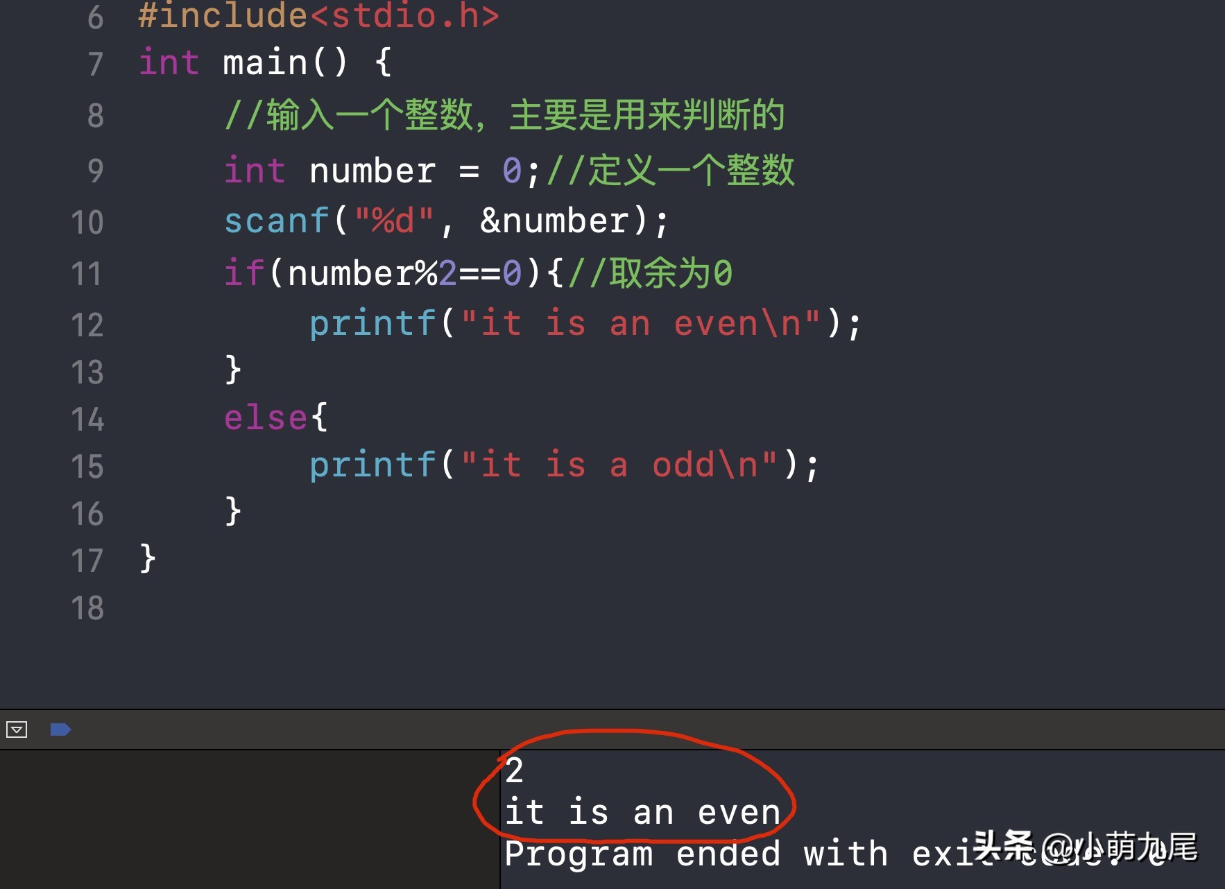 if(number%2==0){//取余為0