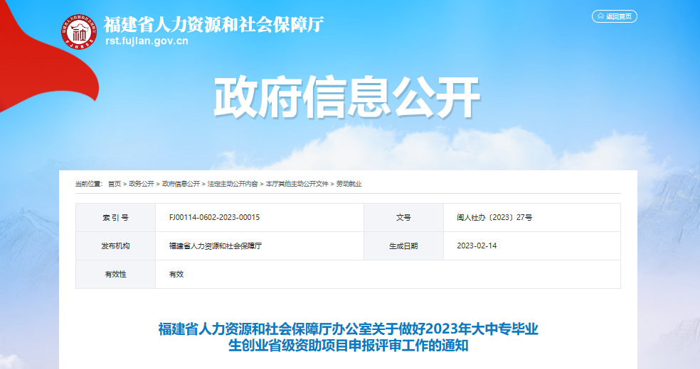 福建省人力資源和社會保障廳發布