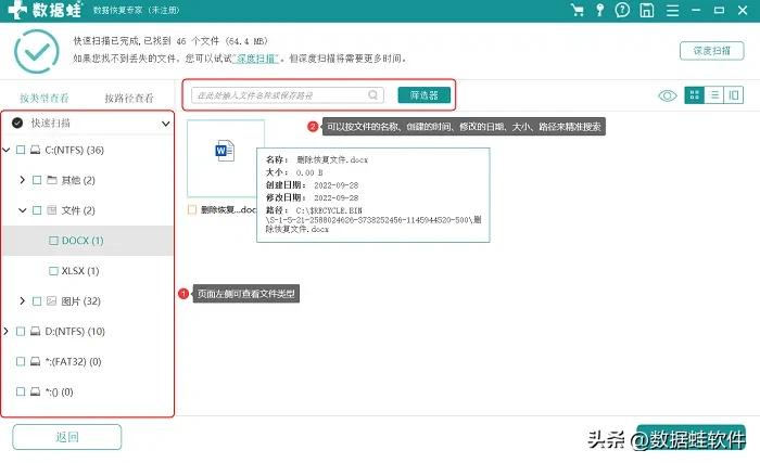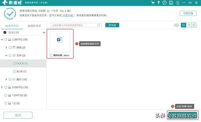 除了上述的方法,其實比較簡單的恢復方法就是通過專門的軟件來恢復,比如數據蛙數據恢復專家。這個軟件可以恢復多種格式的文件,操作也十分簡單,非常適合學生黨和上班族。那已經刪除的文件怎么恢復?