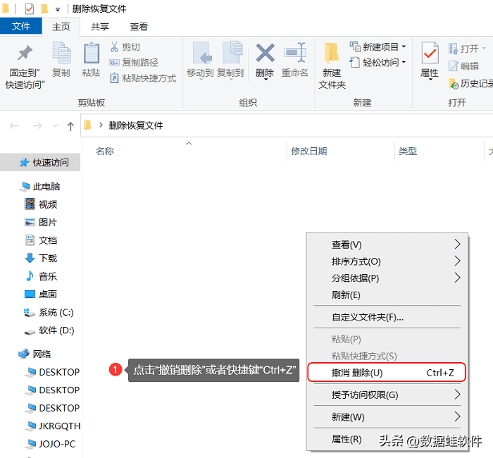 如果被刪除的是文件夾里面的內容,同樣也沒進行下一步的操作。數據誤刪除怎么恢復?可以進去之前數據保存的文件夾里,點擊空白處,鼠標右鍵出現的頁面,點擊“撤銷刪除”或者通過快捷鍵“Ctrl+Z”來恢復文件。