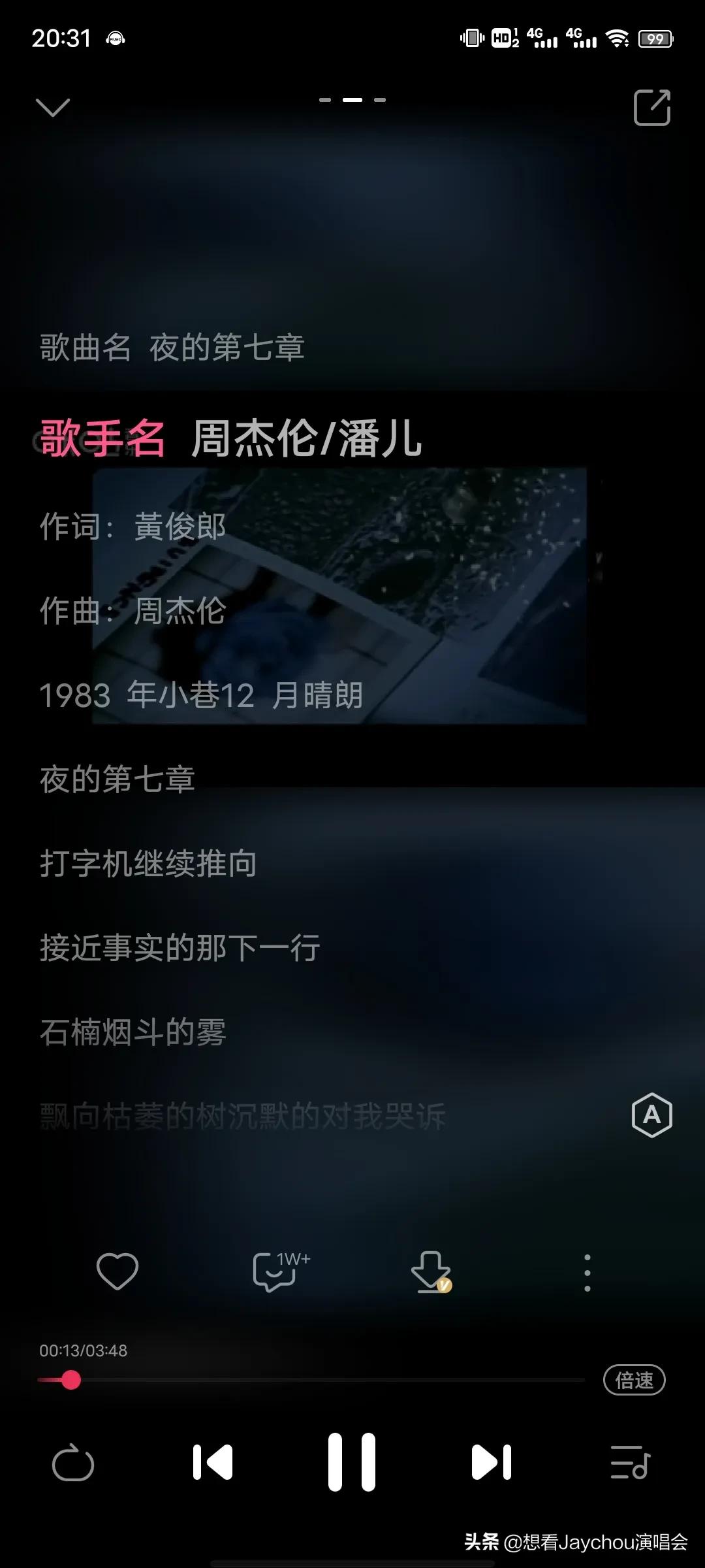 戴上耳機,一個人躺在床上,關上燈,音樂背景調成暗黑色,歌詞調成你喜歡的粉色系,聽了很多遍的《夜的第七章》,再次縈繞在耳邊。