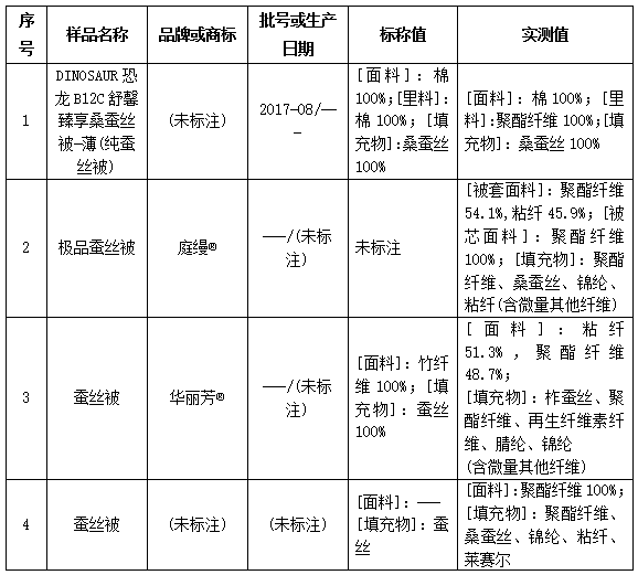 天氣轉涼,集輕柔、滑爽、舒適并具有很好的保暖性為一體的蠶絲被成為眾多消費者的選擇。國家標準規定,蠶絲被是指填充物含桑蠶絲和(或)柞蠶絲50%及以上的被類產品。填充物含100%蠶絲的為純蠶絲被,填充物含50%及以上蠶絲的為混合蠶絲被。目前市場上蠶絲被(包括純蠶絲被、混合蠶絲被)品類繁多,價格差距也很大,從一百至數千元不等。由于消費者無法從外觀上直接判斷蠶絲被的真實質量情況,在選購時只能以價錢或表面質量狀況來選購。近期廣州市消委會對在廣州市場上及各電商平臺上銷售的蠶絲被開展了比較試驗。結果僅對所購買的樣品負責,不代表其同一批次或其他批次產品的質量狀況。
