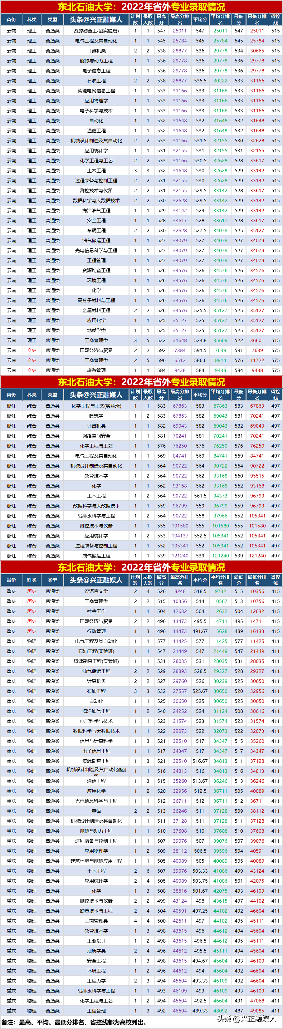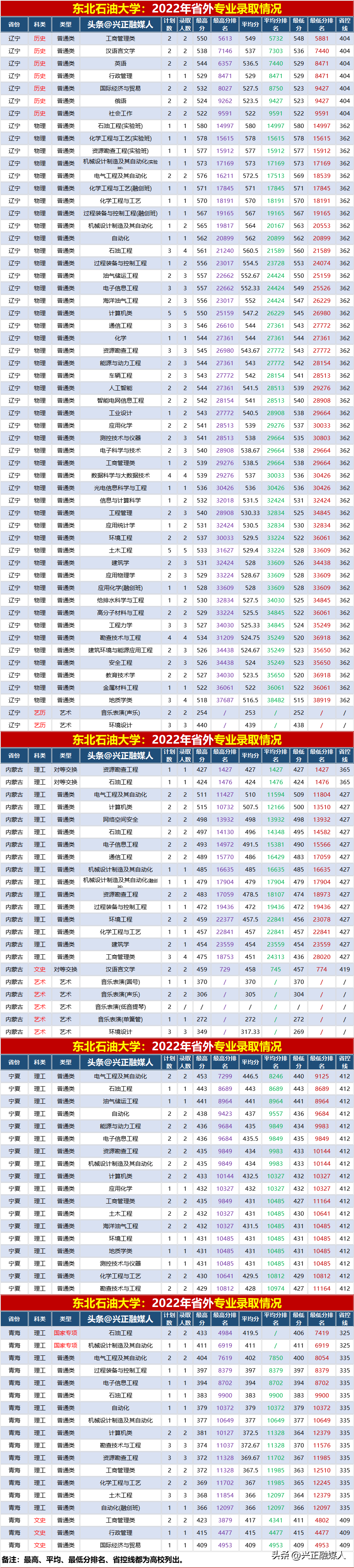 東北石油大學2022年分省分專業錄取匯總(內3外1),2023屆收藏參考!