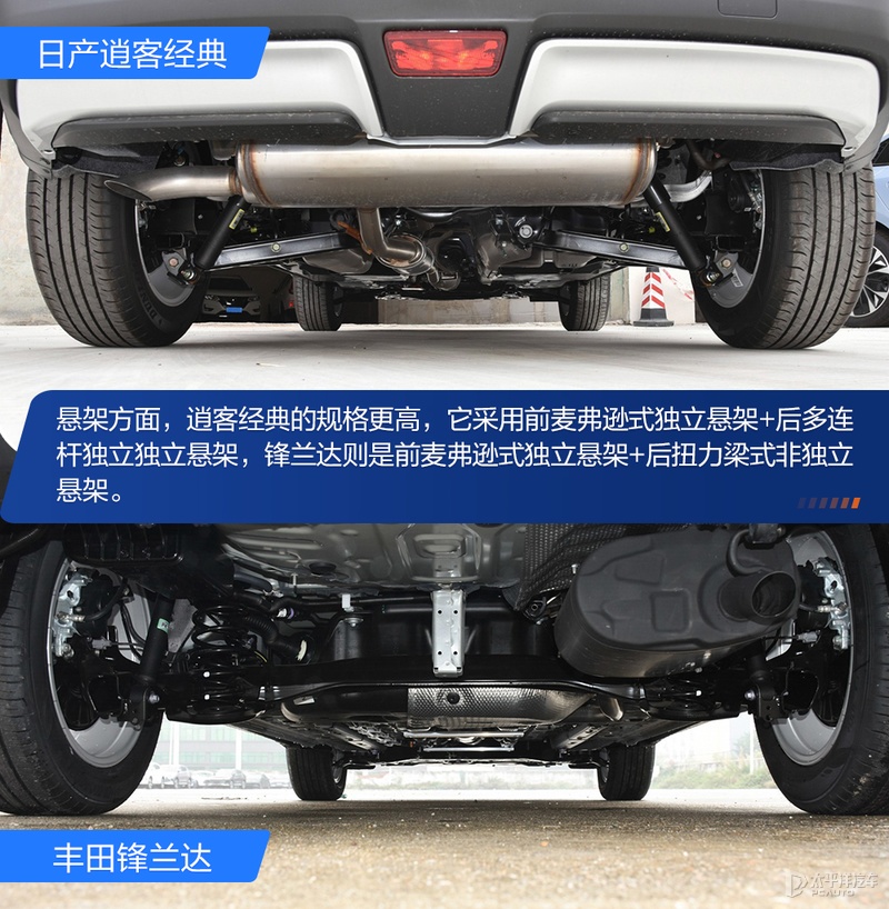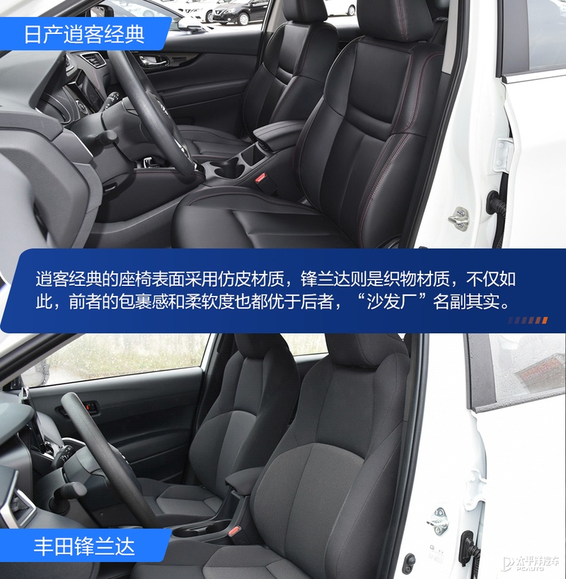 參與本次對比的具體款型分別為2023款 逍客經典 2.0L CVTXV舒適版(官方指導價12.59萬元)和2023款 鋒蘭達 2.0L CVT精英版(官方指導價12.58萬元)。