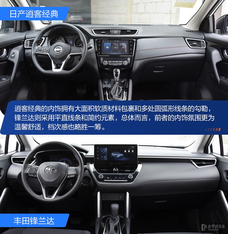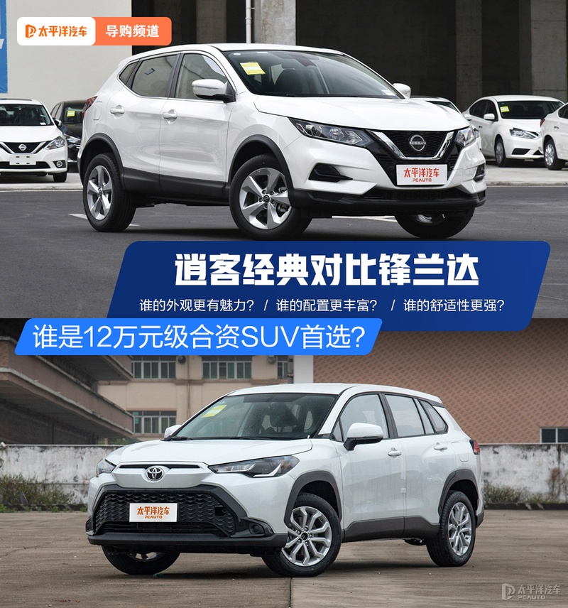 【太平洋汽車 導購頻道】近年來,國內SUV市場的增量慢慢見頂,車企們不得不圍繞存量進行激烈競爭,于是各個級別的SUV車型都陸續降低門檻。比方說,以前12萬元的價位能考慮的合資SUV一般只有小型SUV,如今卻可以選擇一些合資緊湊型SUV。而在12萬元級的合資緊湊型SUV當中,最受關注的非日產逍客(詢底價|查參配)經典和豐田鋒蘭達莫屬,它們憑借出色的產品力和可靠性被高度認可。那么問題來了,它們二者之間究竟誰才應該是首選呢?