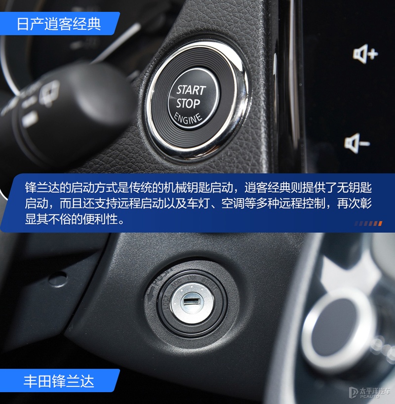 逍客經典的內飾設計營造出溫馨的居家氛圍,鋒蘭達則是走了簡約風格路線。在車內配置方面,逍客經典顯著占優,它為用戶提供了更多的便利,包括無鑰匙啟動、導航系統、倒車影像、內置行車記錄儀、自動空調等等。由此可見,哪怕是低配車型,逍客經典也絲毫不將就。