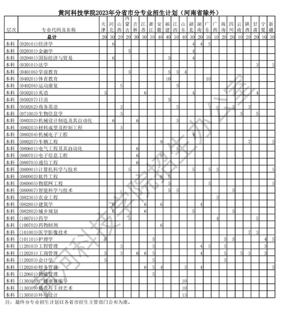 1.普通本專科專業招生計劃