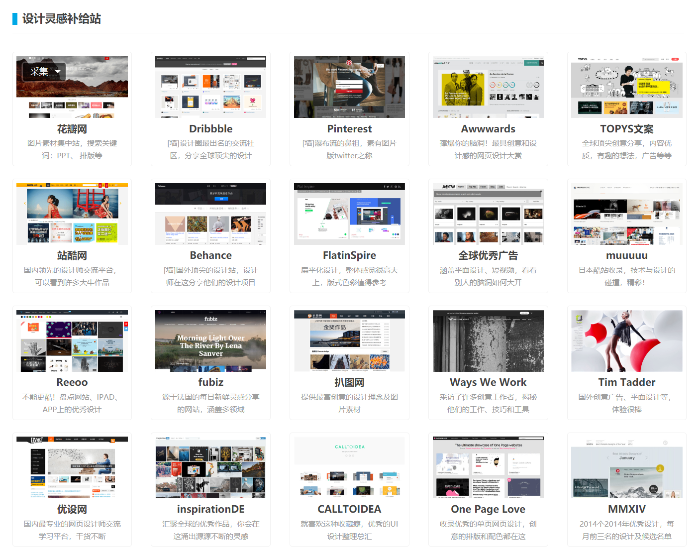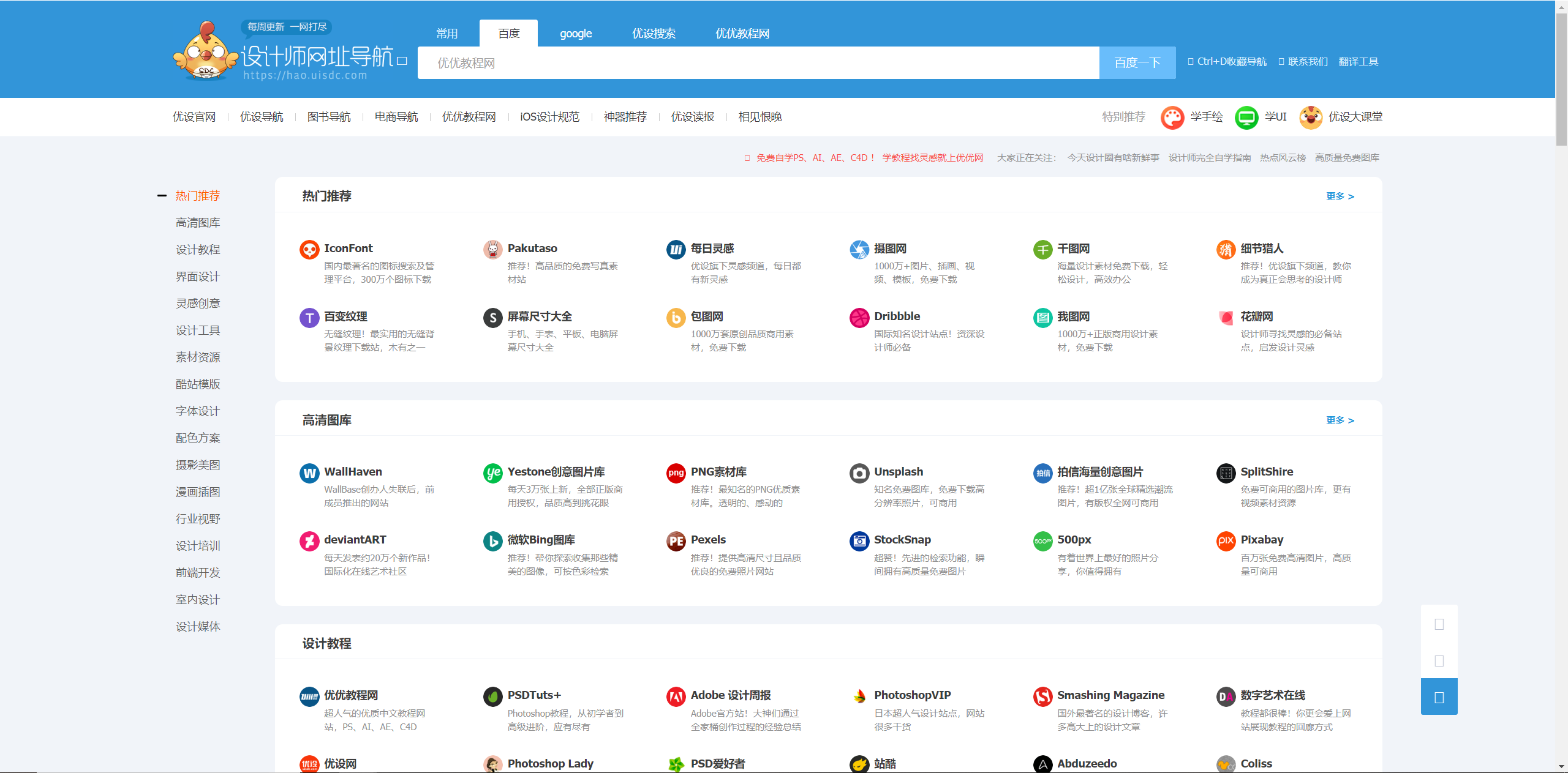 設計類網址導航推薦的網站會可能和前面的稍有重疊,當然,也多了很多專業的內容。