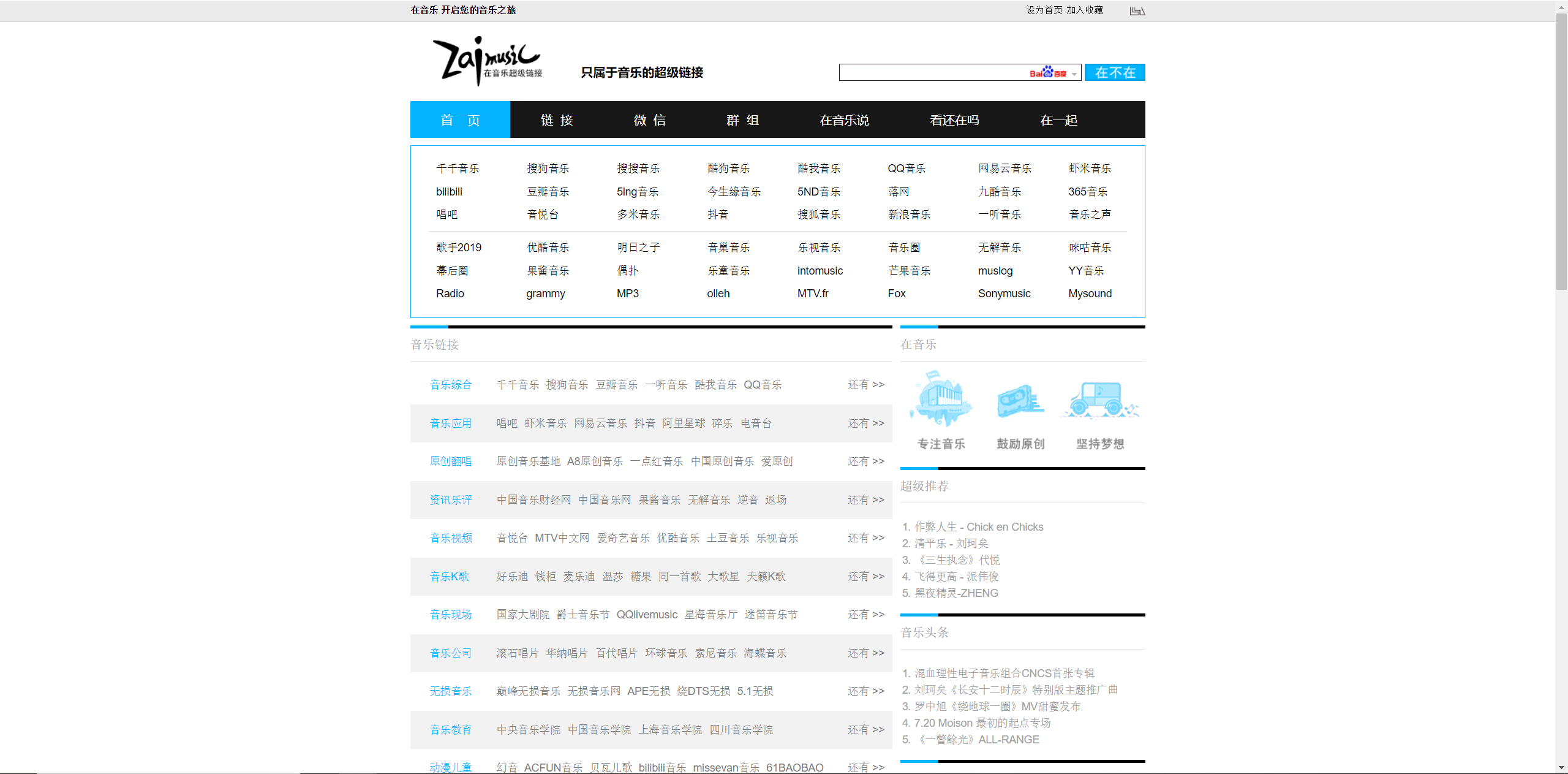 一個非常全面的音樂類網址導航,各種音樂收聽網站都能在里面找到。