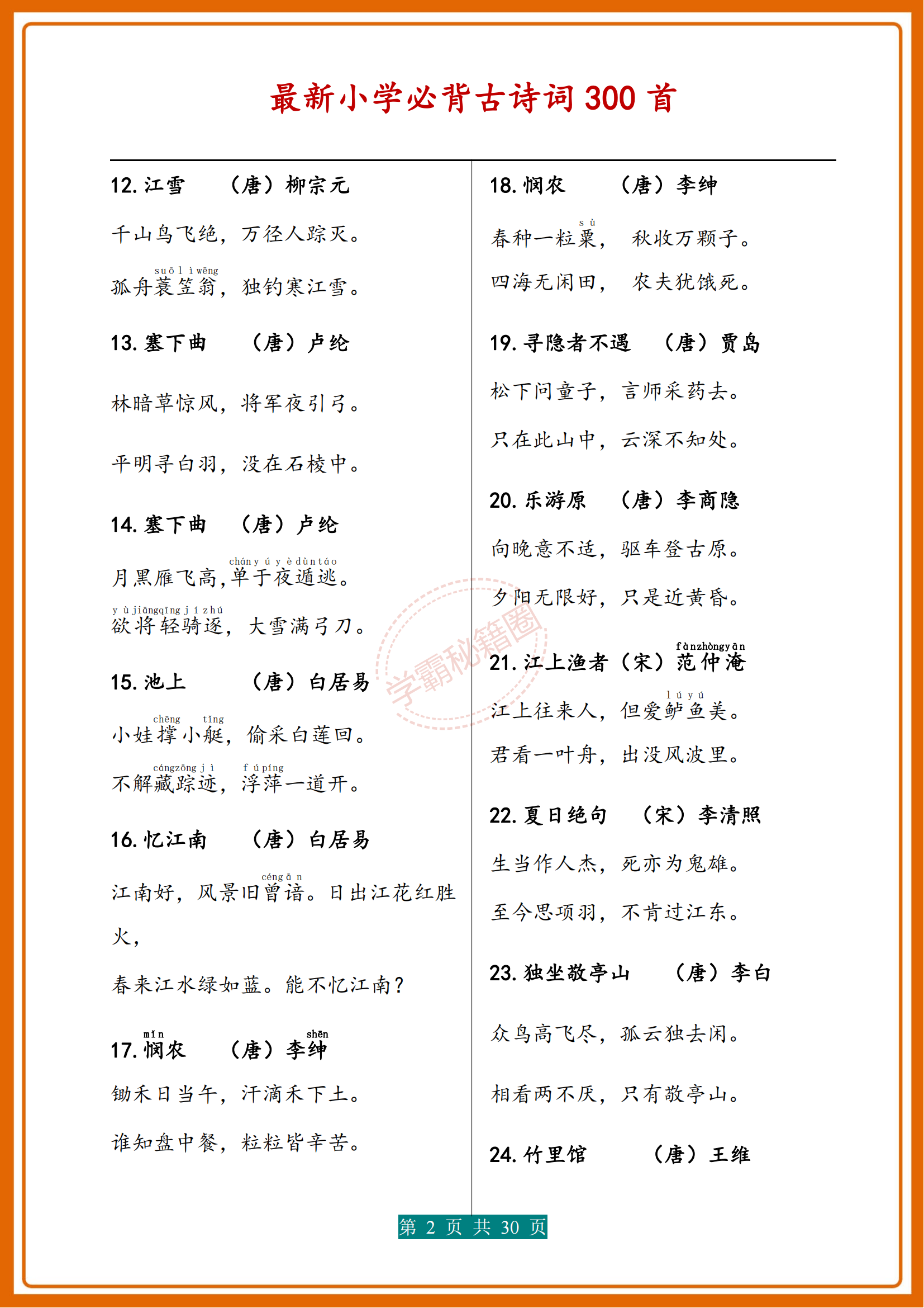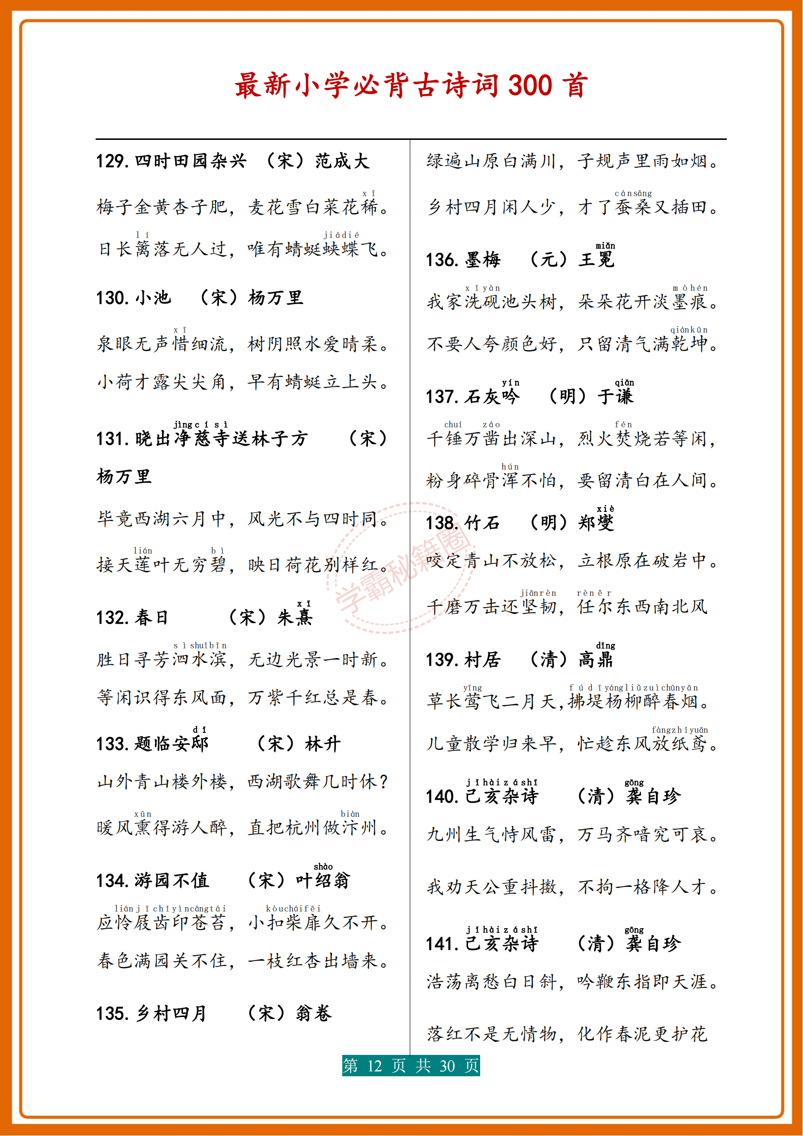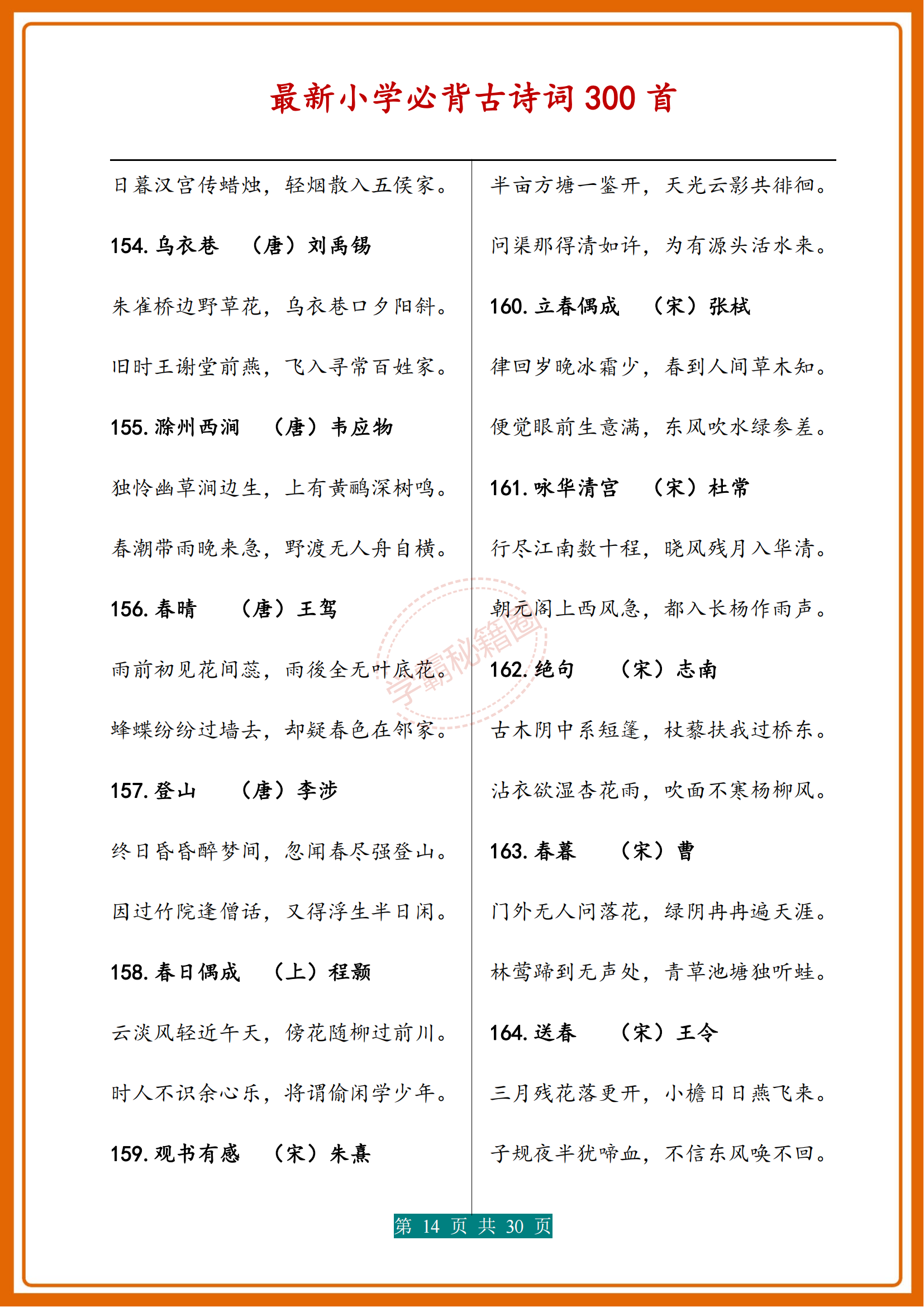 人民日報|新版小學1-6年級必背(古詩詞)300首濃縮版30頁,收藏