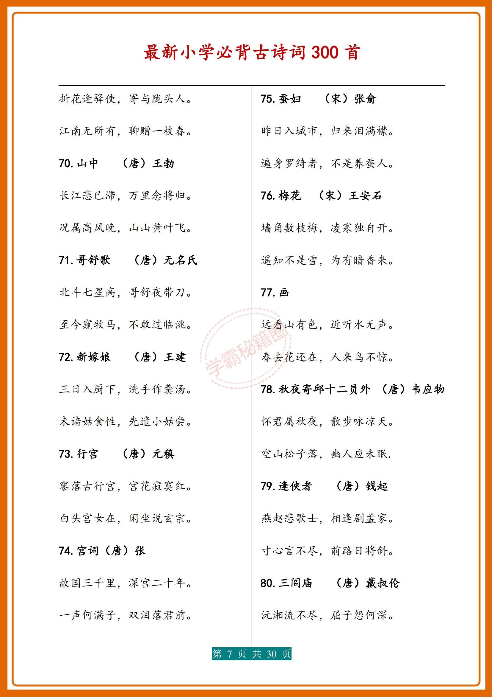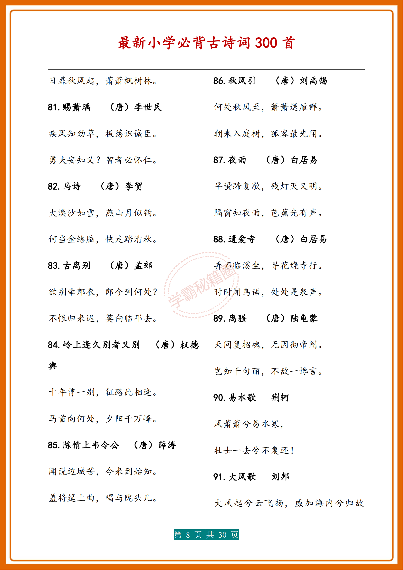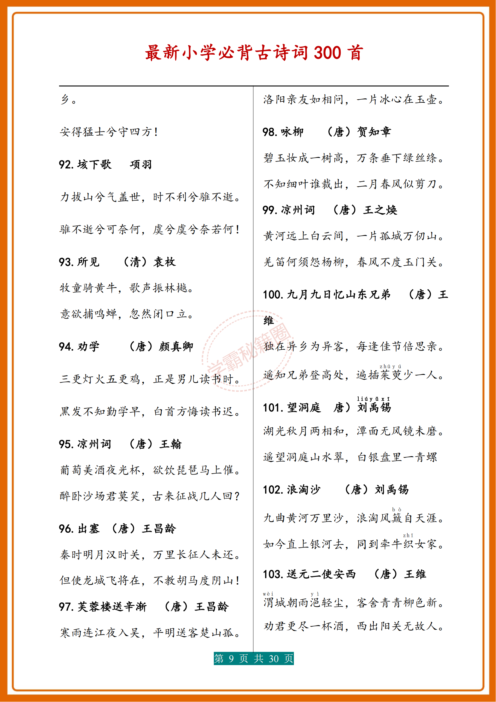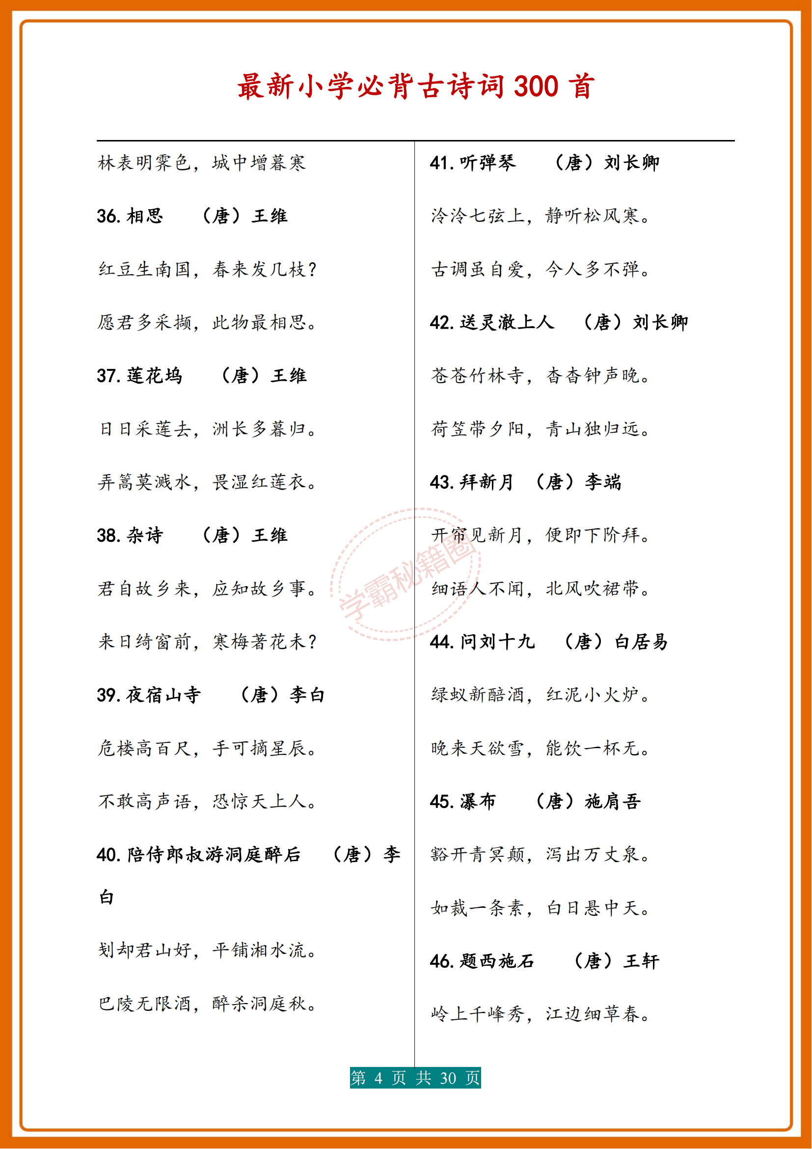 人民日報|新版小學1-6年級必背(古詩詞)300首濃縮版30頁,收藏