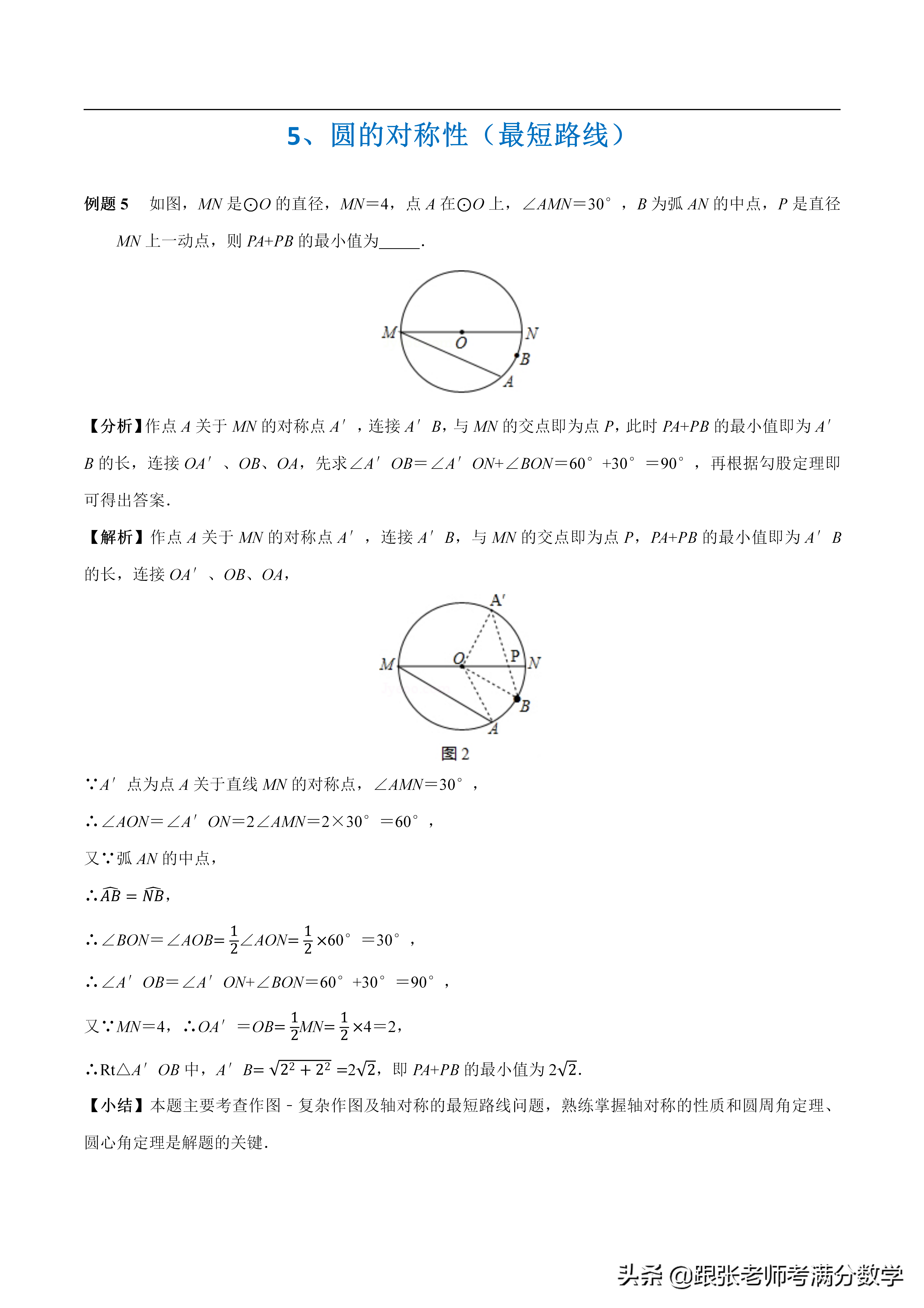 5、圓的對稱性(最短路線)