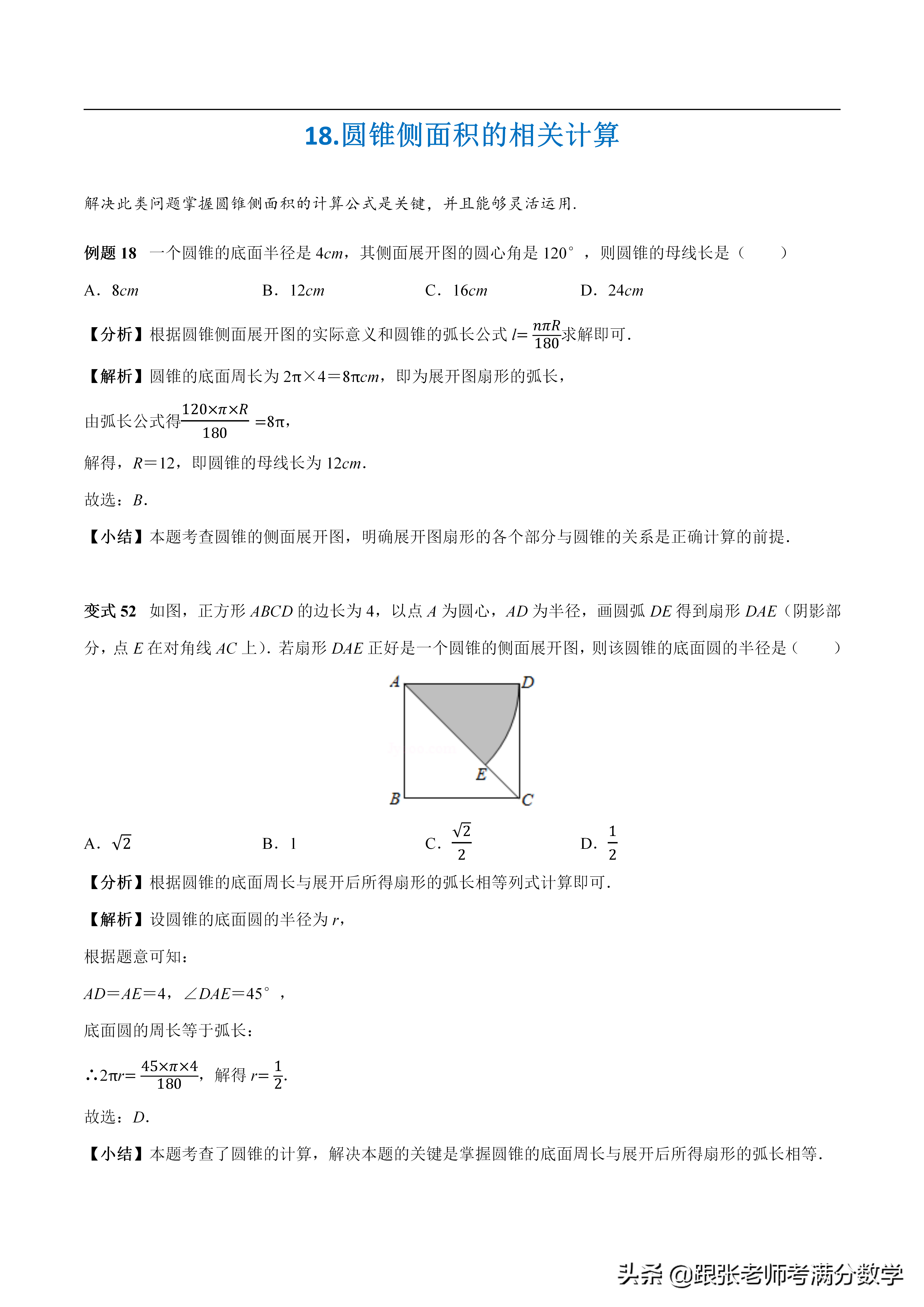 18.圓錐側面積的相關計算