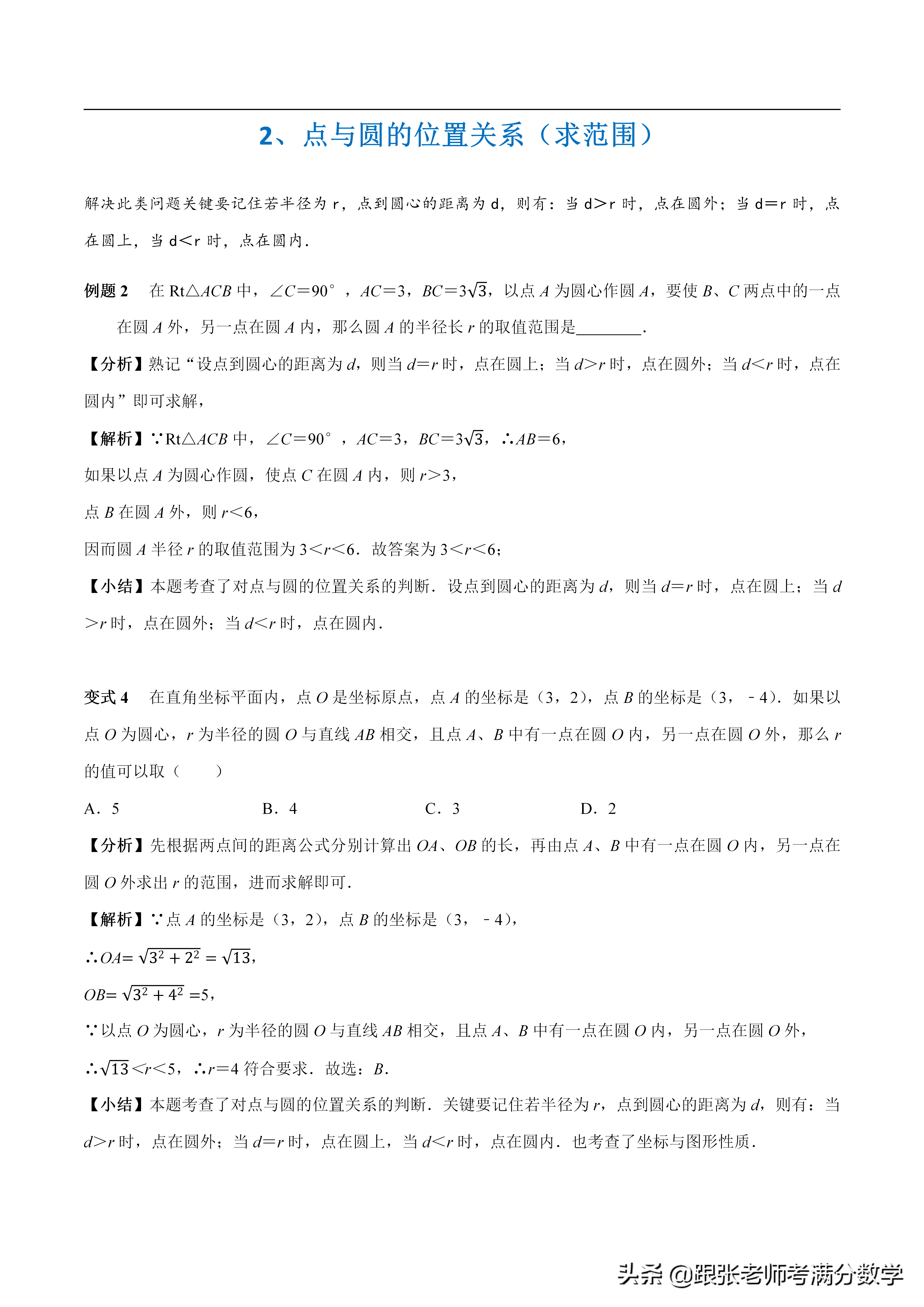 2、點與圓的位置關系(求范圍)