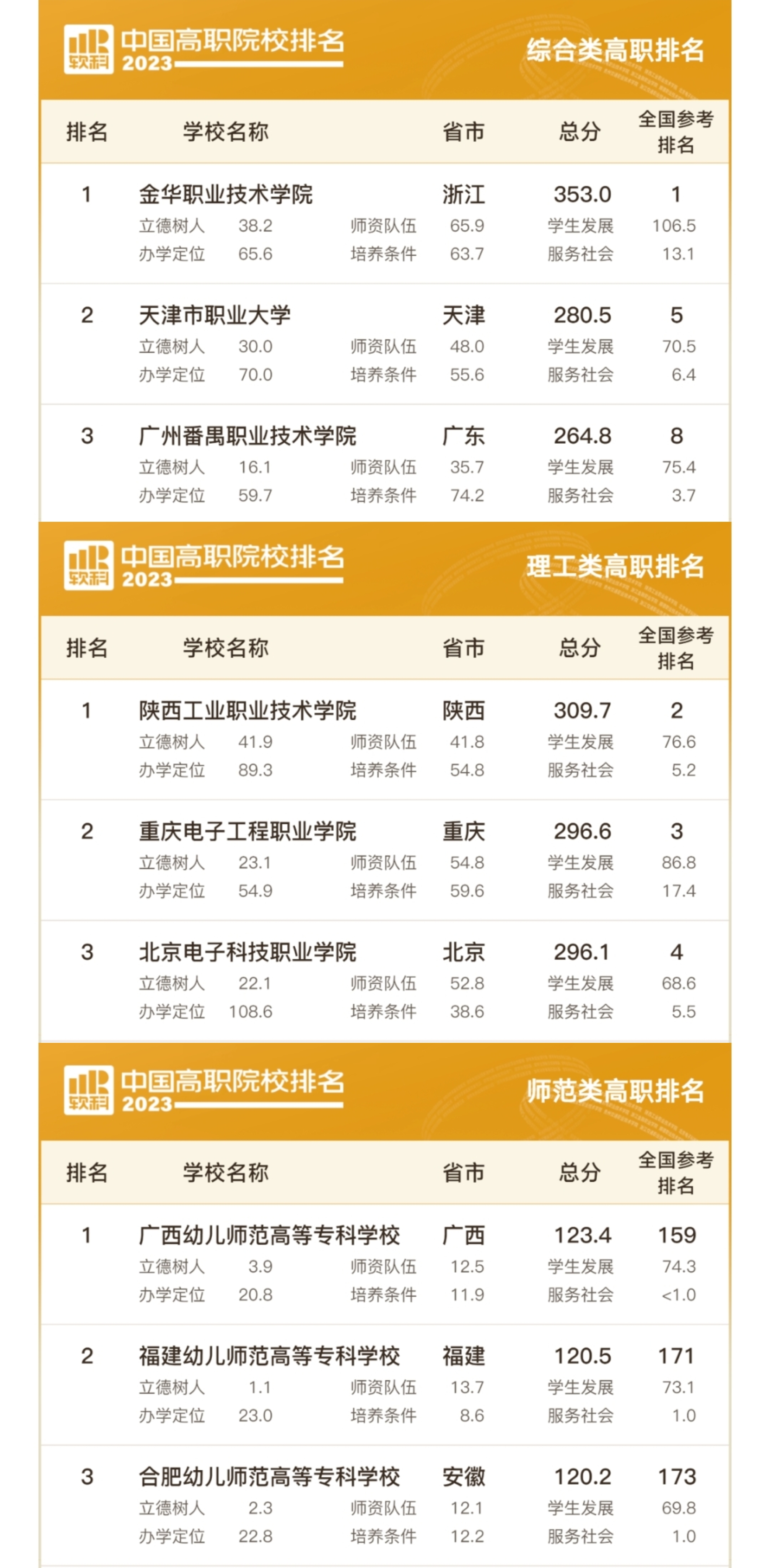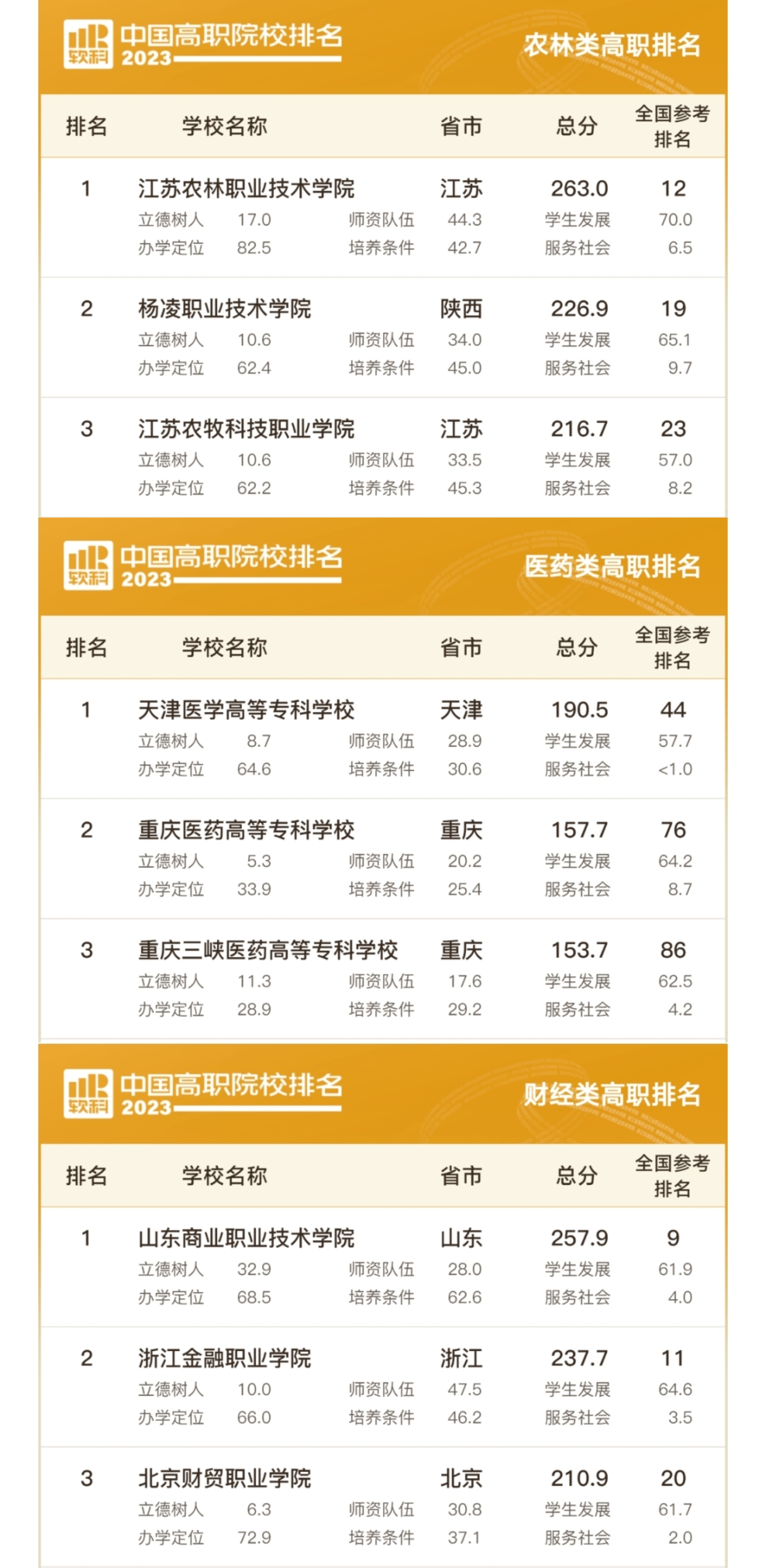 7月3日,高等教育專業評價機構軟科發布其首份2023中國高職院校排名。