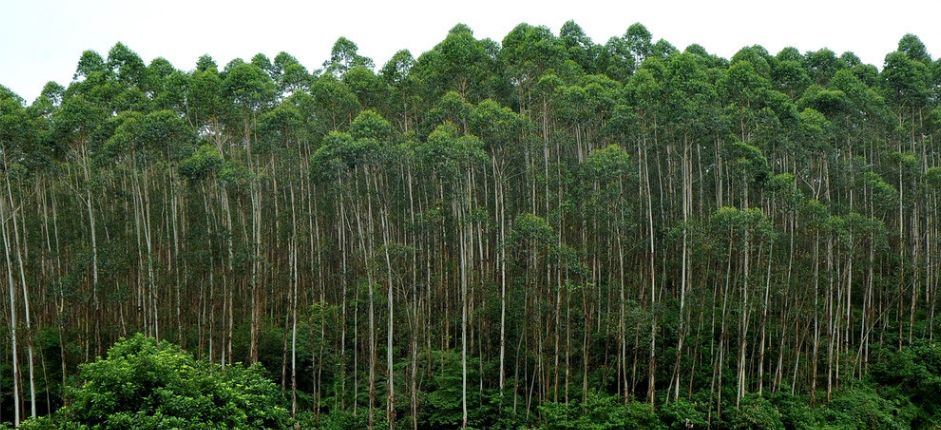 藍桉:原產于澳大利亞,中國廣西、云南、四川等地也有栽培。藍桉是桃金娘科、桉屬大喬木,樹皮灰藍色,片狀剝落;幼態葉對生,葉片卵形,基部心形;花大,單生或聚生于葉腋內;蒴果半球形。喜光,喜溫暖濕潤氣候,對土壤要求不苛。