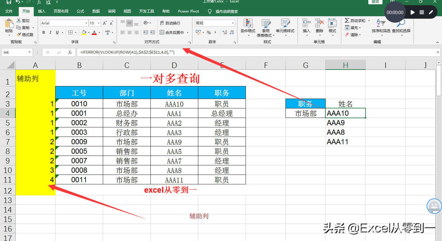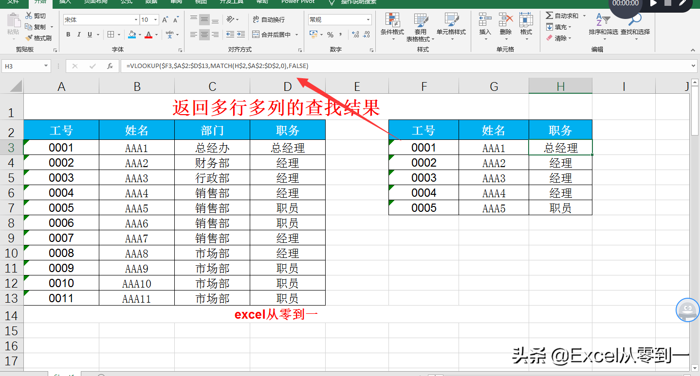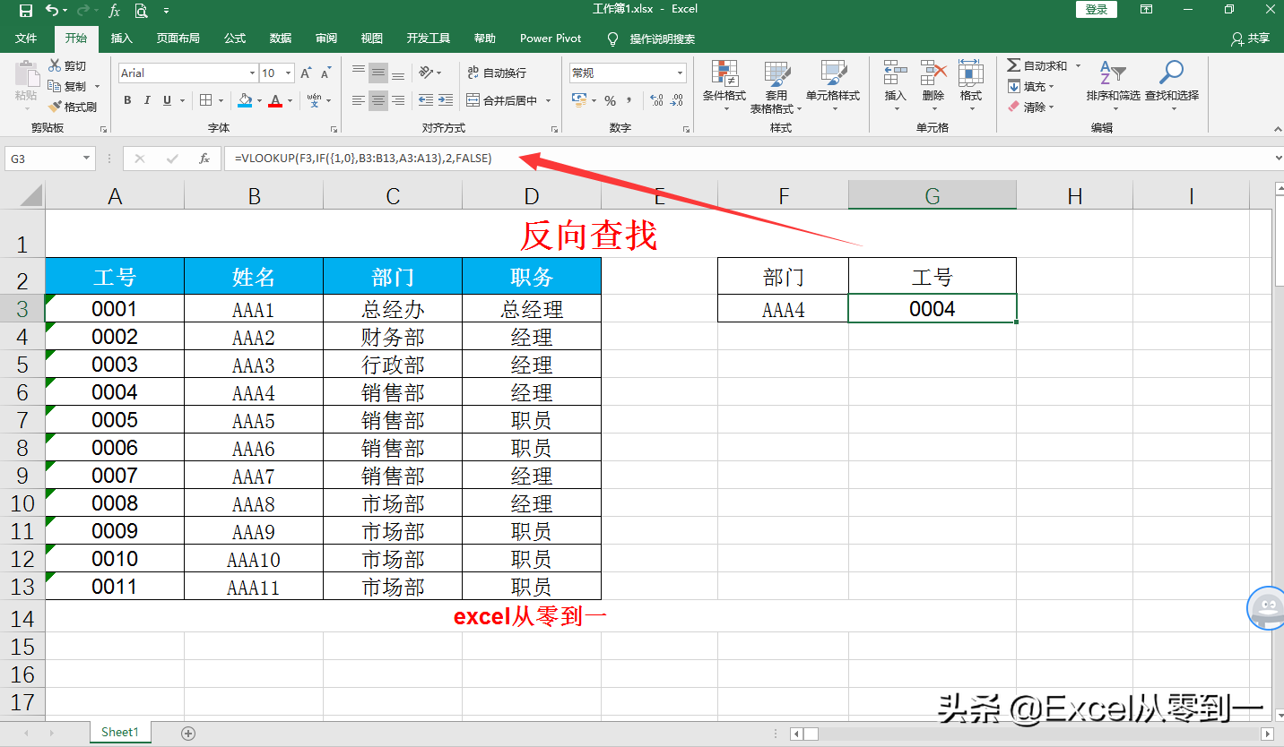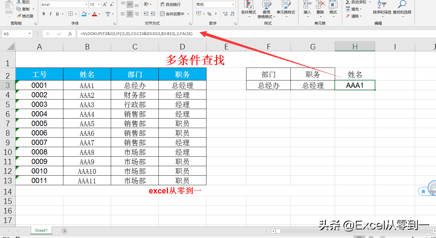 使用連接符將部門與職務連接在一起作為查找條件,然后我們利用if函數構建二維數組,并提取數據