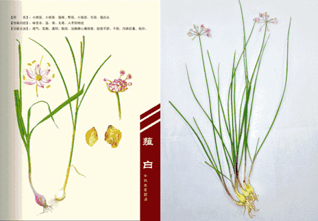 6、《本草求真》:薤,味辛則散,散則能使在上寒滯立消;味苦則降,降則能使在下寒滯立下;氣溫則散,散則能使在中寒滯立除;體滑則通,通則能使久痼寒滯立解。