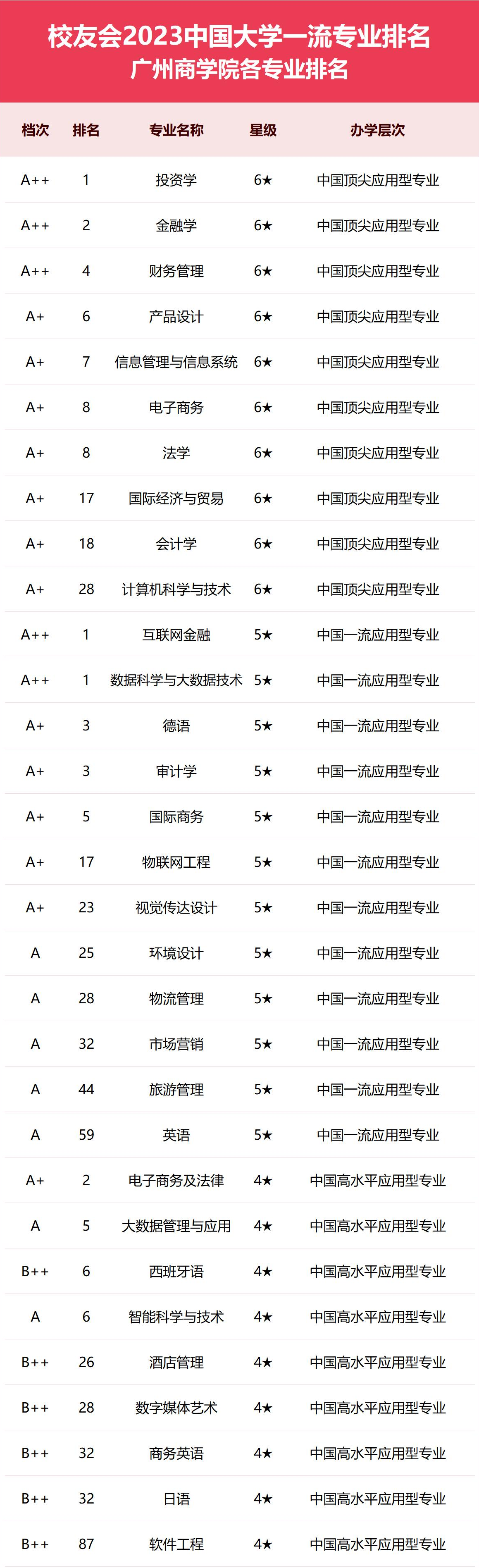 而廣州商學院所提供的專業排名情況更是讓人眼前一亮。