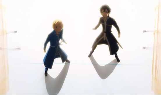 當桐人擋下賽門的攻擊的時候趕緊提醒尤吉歐不要發愣,趕緊上。而本以為在以往動漫中弓兵必定會近戰的定律,賽門會與尤吉歐來一場盛大的廝殺,沒想到只是單純的得到冰薔薇的回應就已經破防了,后追加二連擊技第二下成功打倒了賽門,總的來看聲勢大,而戰斗小。