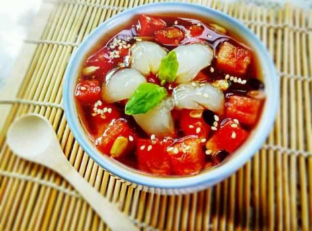 一道美味可口,干凈又衛生,清涼解暑的冰粉就做好了。怎么樣?愛吃冰粉的小朋友學會了嗎?自己在家做的冰粉,成本不到兩元錢。一次做一大盆全家都吃不夠。大家在做涼粉的時候,表面再撒上愛吃的水果,特別的解饞,喜歡的朋友就去試試吧!