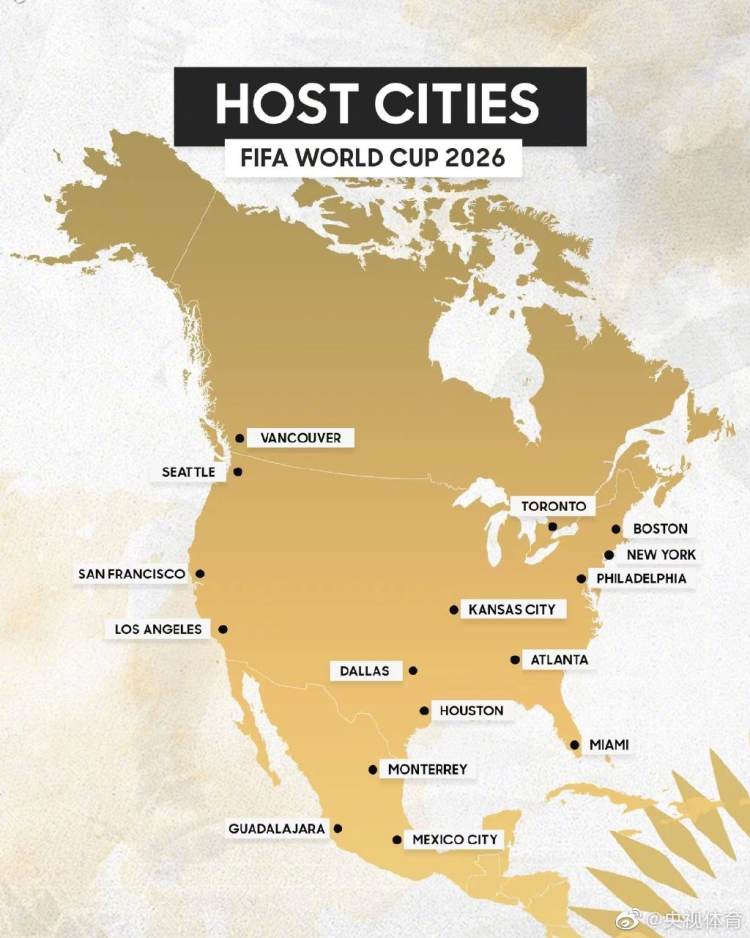 今天凌晨,國際足聯公布了2026年世界杯的舉辦城市,由美國、加拿大、墨西哥三個國家的16座城市組成。這次世界杯將是歷史上第一次有48支球隊參賽。