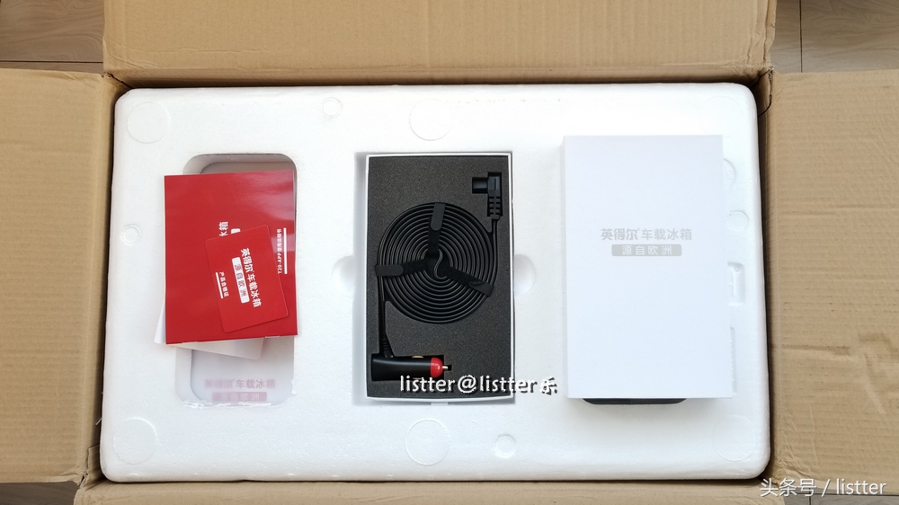 包裝盒開箱,考慮到大多數汽車后備箱內鮮有電源插頭,所以隨機配備了足夠長度的車載電源線,可以輕松在車內走線。另外,還有一個選配的220V變壓轉換器,可以方便在車庫、家里直接接到交流市電里用。