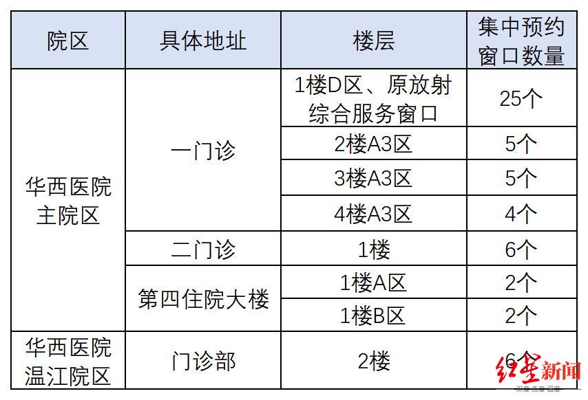 為了方便大家、避免出現排長隊的情況,華西醫院一共設置了55個集中預約服務窗口,分布在不同院區,不同門診部以及不同樓層,光是一門診一樓D區、第一住院大樓一樓,就開了25個窗口。