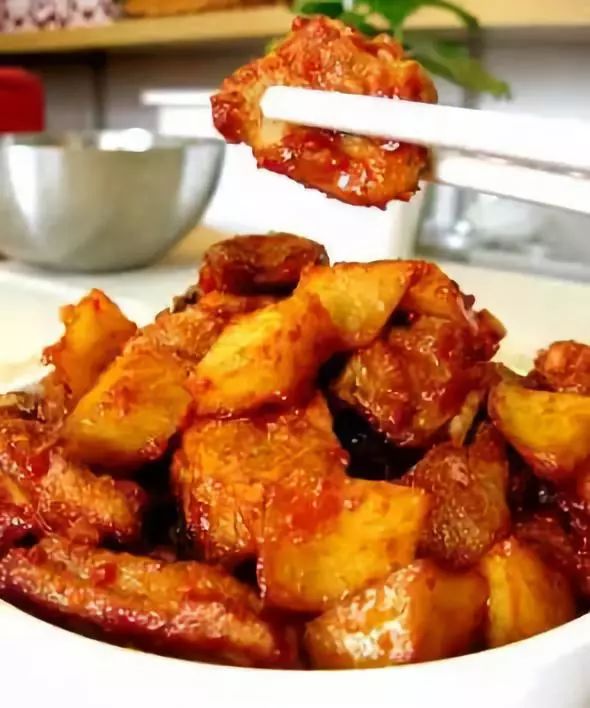 材料:凈排骨400克,馬鈴薯300克,茄汁35克,精鹽,白糖各3茶匙,味精1茶匙,糖醋汁0.5湯匙,威化15克,紹酒,濕淀粉,干淀粉各0.5湯匙,蒜茸1.5茶匙,高湯2杯,花生油1000克。