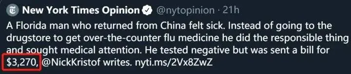 要注意,美國僅僅免費展開新冠病毒檢測而已,治療費用白宮一律不買單,全部要求自行承擔。等等,全部自行承擔好像也不是什么難事,畢竟美國的醫療保險不是被譽為“世界領先”么,有保險公司“兜著”,也算是平時繳納的巨額保費有了用武之地。