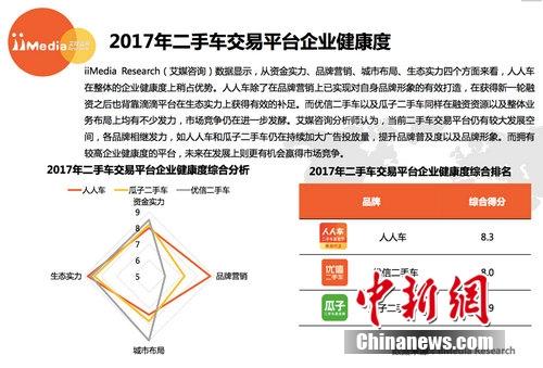 中新網12月25日電 12月25日,獨立第三方數據平臺艾媒咨詢發布了《2017秋季中國二手車交易平臺行業研究報告》(以下簡稱“報告”),從市場概況、活躍用戶增長、用戶滿意度、企業健康度等多個層面對國內主流二手車交易平臺發展現狀進行了客觀詳盡的分析。報告中,人人車表現出眾,在產品、口碑、生態實力等多個維度領跑行業,獲得第三方數據機構認可。