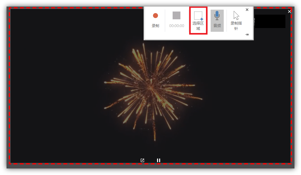 2.我們點擊這個功能,將會返回到桌面,隨后點擊【選擇區域】,框選需要錄屏的具體位置,再點擊【錄制】按鈕,即可開始錄屏,還可以錄制聲音。