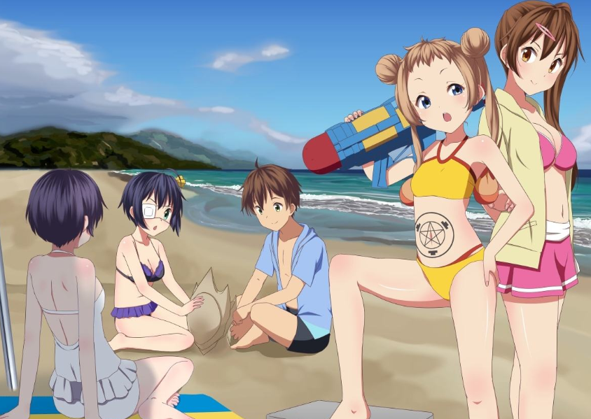 隨后在學校,男主對中二病時代的告別之語讓小鳥游六花聽到,并誤認為富樫勇太是同道中人,在半強迫的情況下,兩人一起,加上六花的仆人——凸守早苗,以及喜歡午睡的學姐——無語七日茴香,成立了一個名字也那么中二的社團——極東魔術晝寢結社之夏。從此開始了令人捧腹大笑的中二病日常生活。在購買飲料之前先輸入只有自己所知的密碼,出來的就是能量藥水;進入家門前先要在門口的計算器上進行證明自己身份的驗算;但這些日常操作怎么能滿足嚴重中二病患者呢?