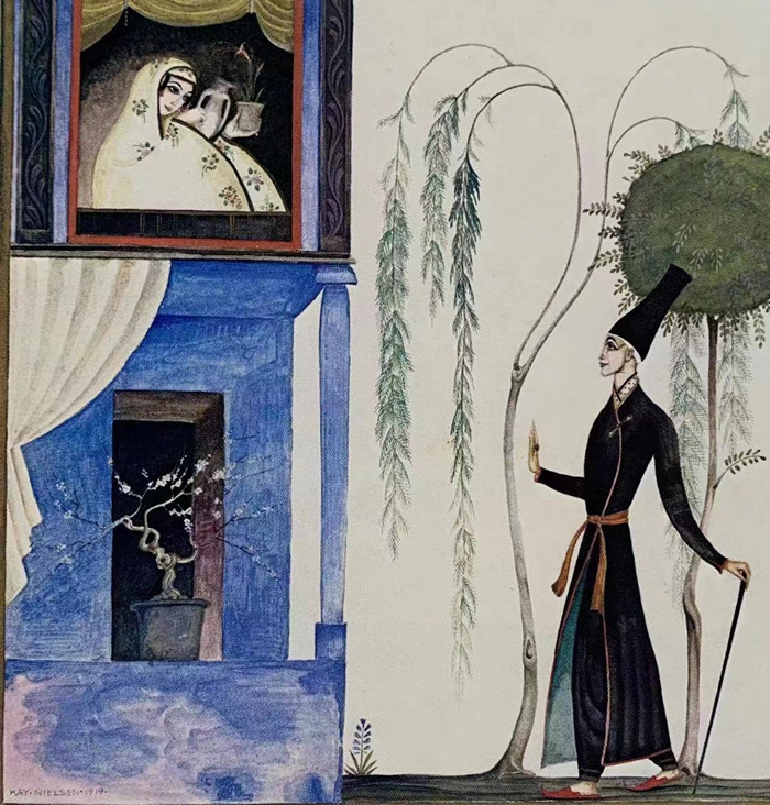 《一千零一夜》是丹麥插畫師凱·尼爾森的重要作品。他的畫風深受奧伯利·比亞茲萊和日本版畫的影響。