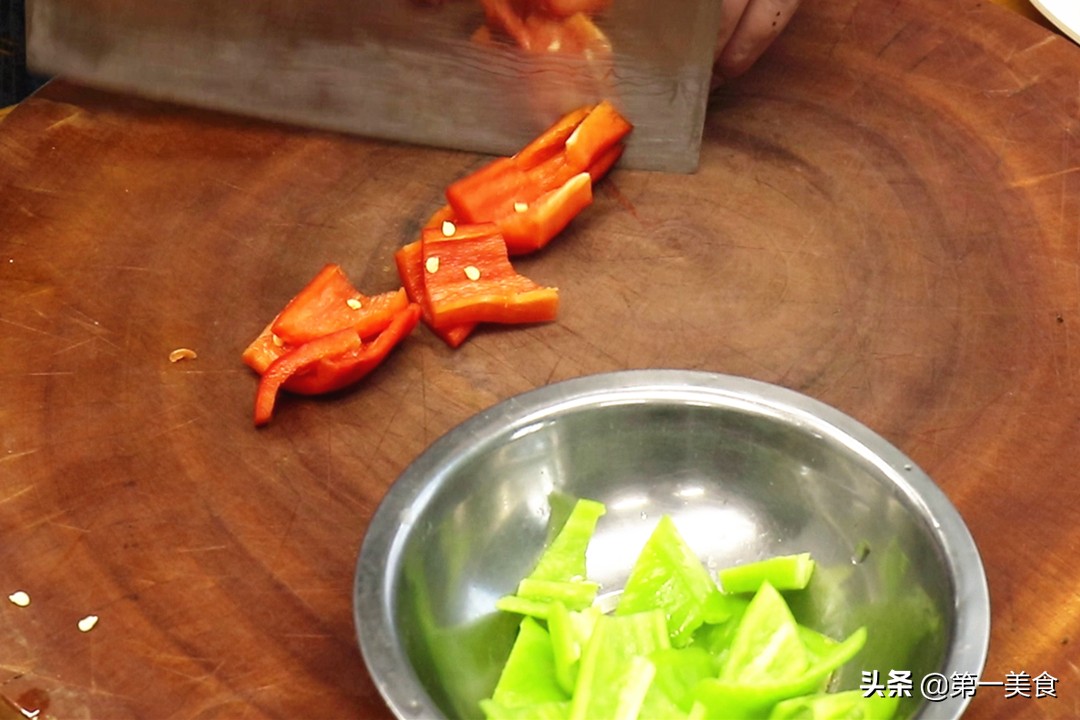 再準備青紅椒各一個,切成三角塊,用來搭配顏色。