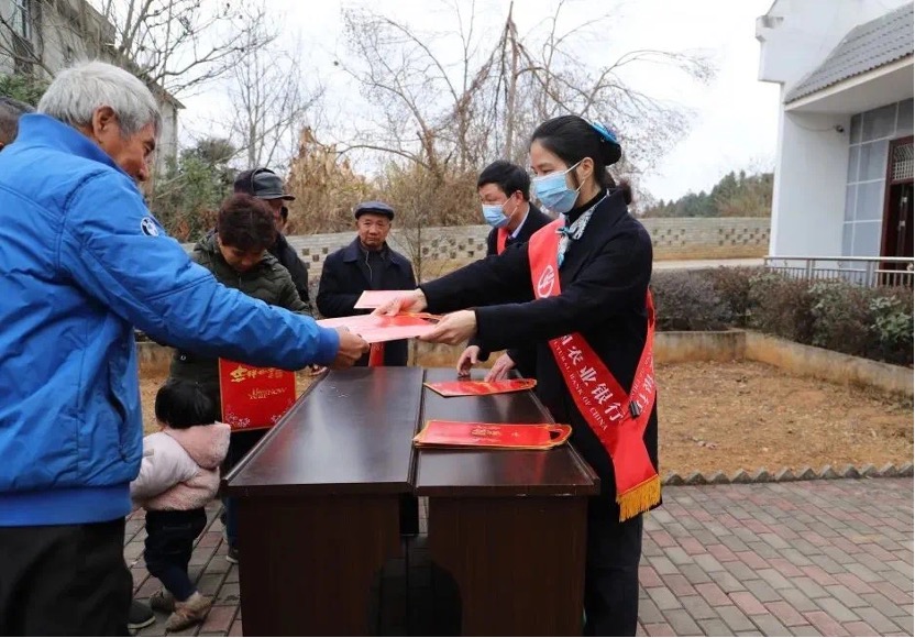 春節前夕,農行福建南平分行志愿者深入建甌市吉陽鎮巨歷口村,開展“結對子·種文化·收新風”活動,將一副副精美的春聯和福字送到村民手中,并向村民們宣講文明過節、文明餐桌、疫情防控、防范電信網絡詐騙和非法集資等知識。
