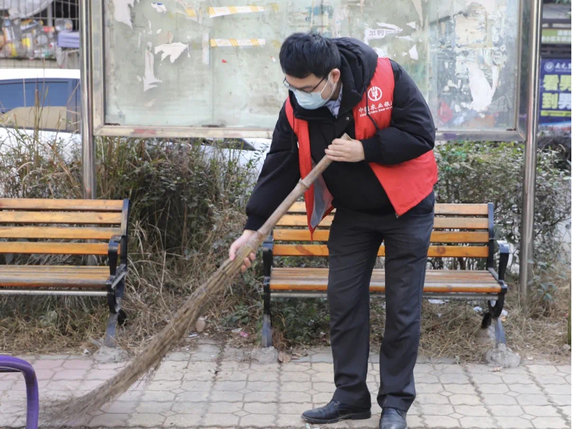 為給當地居民營造一個優美潔凈的過年環境,農行四川南充分行組織黨員、青年志愿者積極參與“進社區義務打掃衛生”活動。